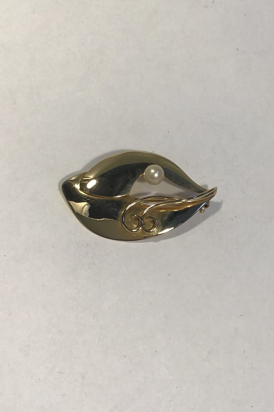 Bernhard Hertz 14K Guldbroche m perle Måler 2.8 cm x 4.5 cm Vægt 7 gr