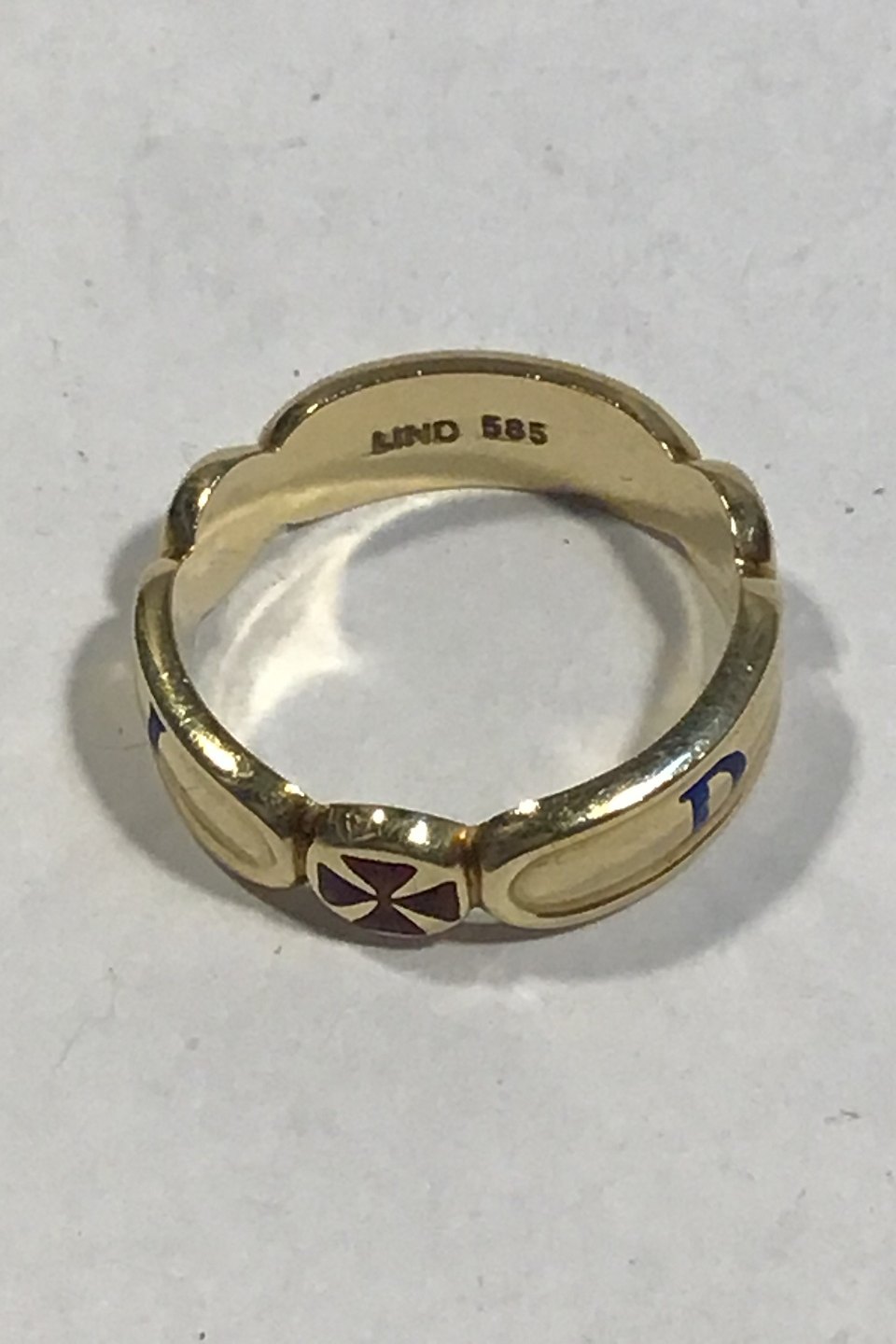 Lind 14K Guld Loge Ring Malteserkors og bogstav inskription IDS Ring str 68 Vægt 10.9 gr