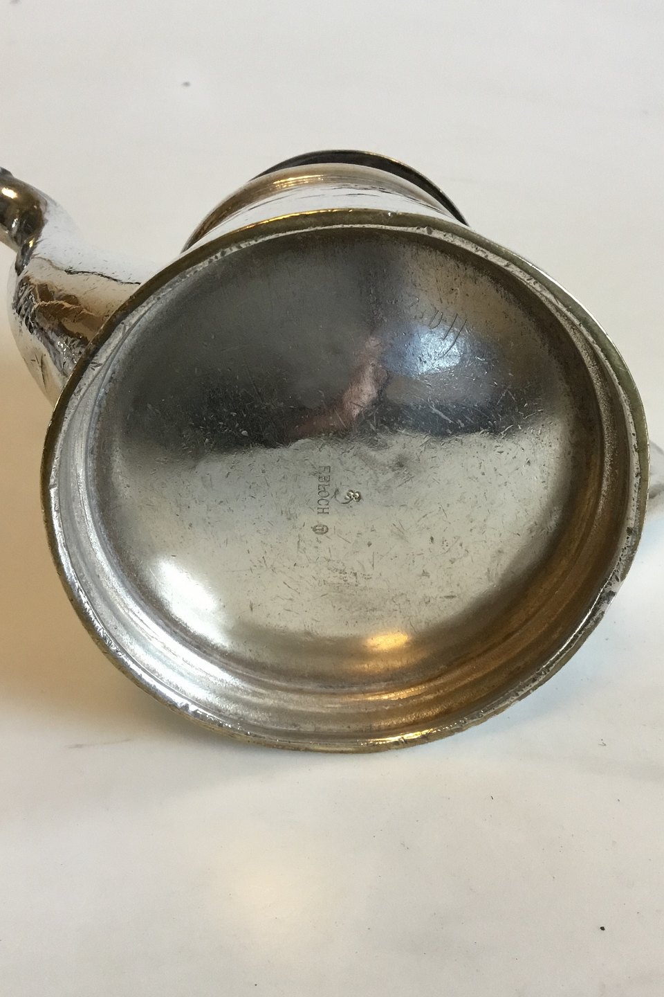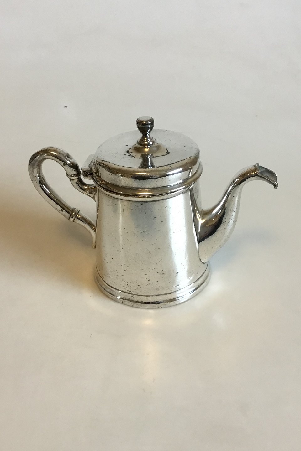 Pletsølv Kande med hængslet låg og DSB logo. Stemplet F. Bloch. Måler 14 cm