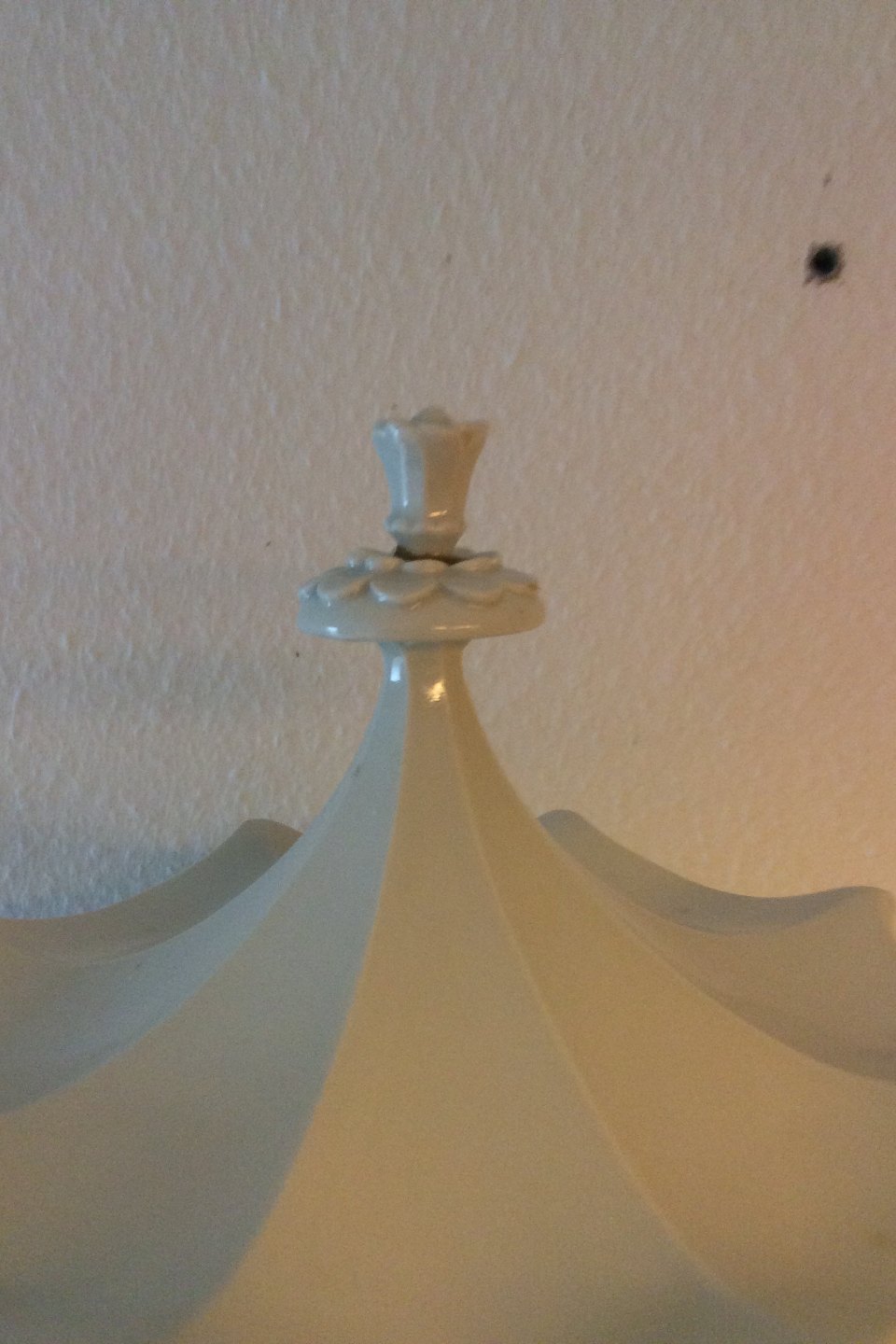 The top knob has been repaired and there is missing a flower between the mans hands and the parfume bottle.