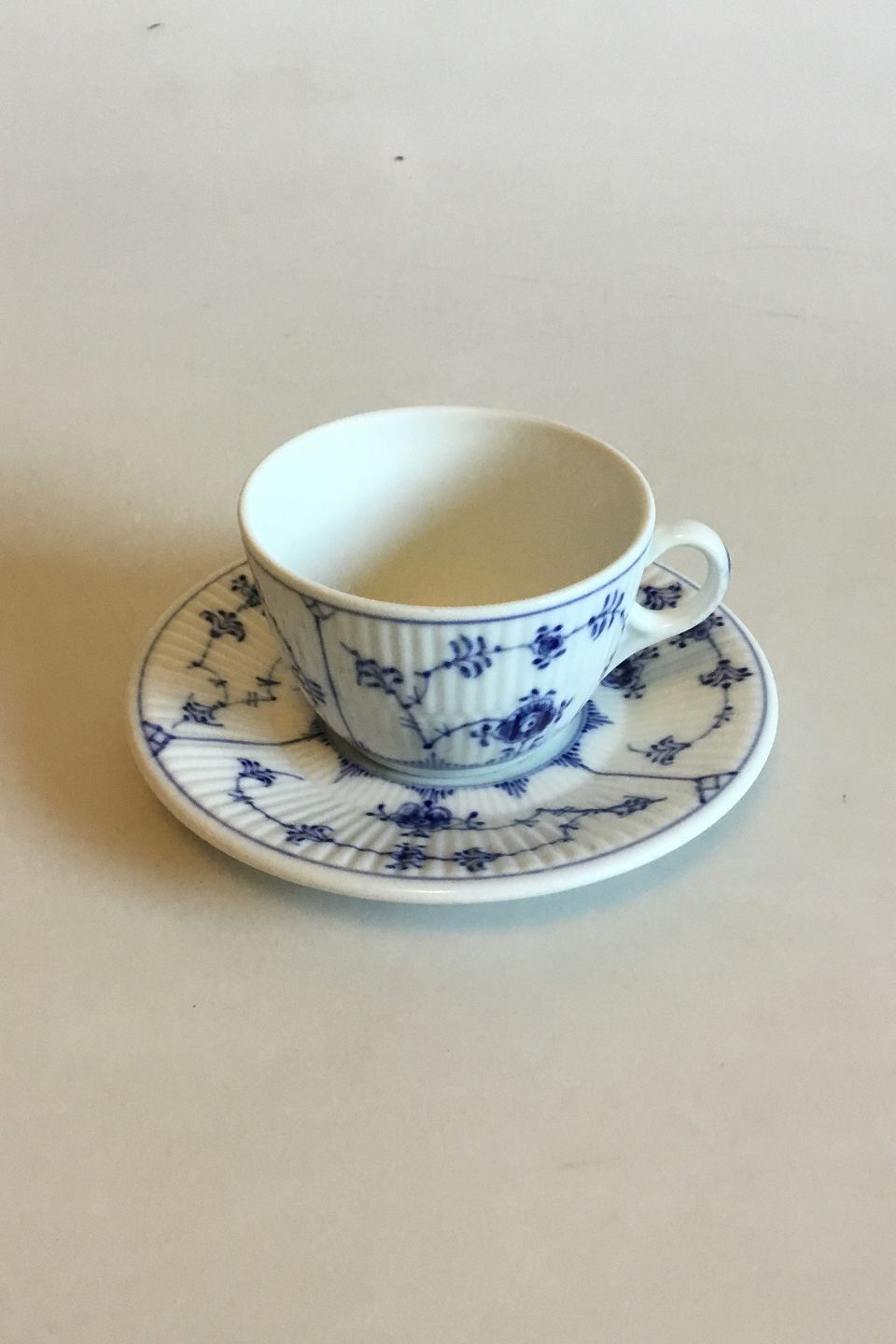 Royal Copenhagen Blue Fluted Plain Hotel Coffee Cup and Saucer No 2187. Measures Cup: 6 cm / 2 23/64 in. x 9.2 cm / 3 5/8 in. dia. Saucer: 16 cm / 6 19/64 in.