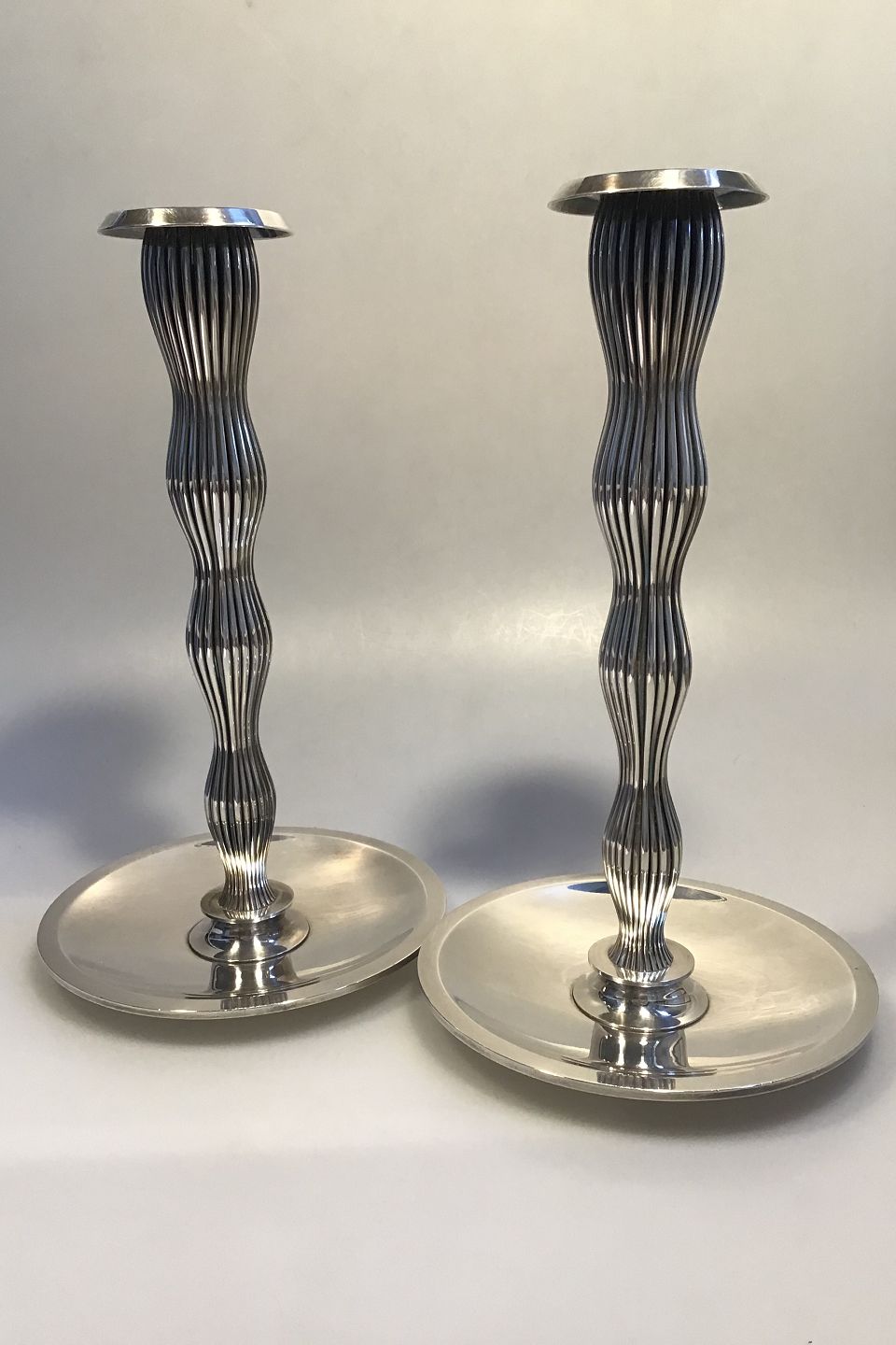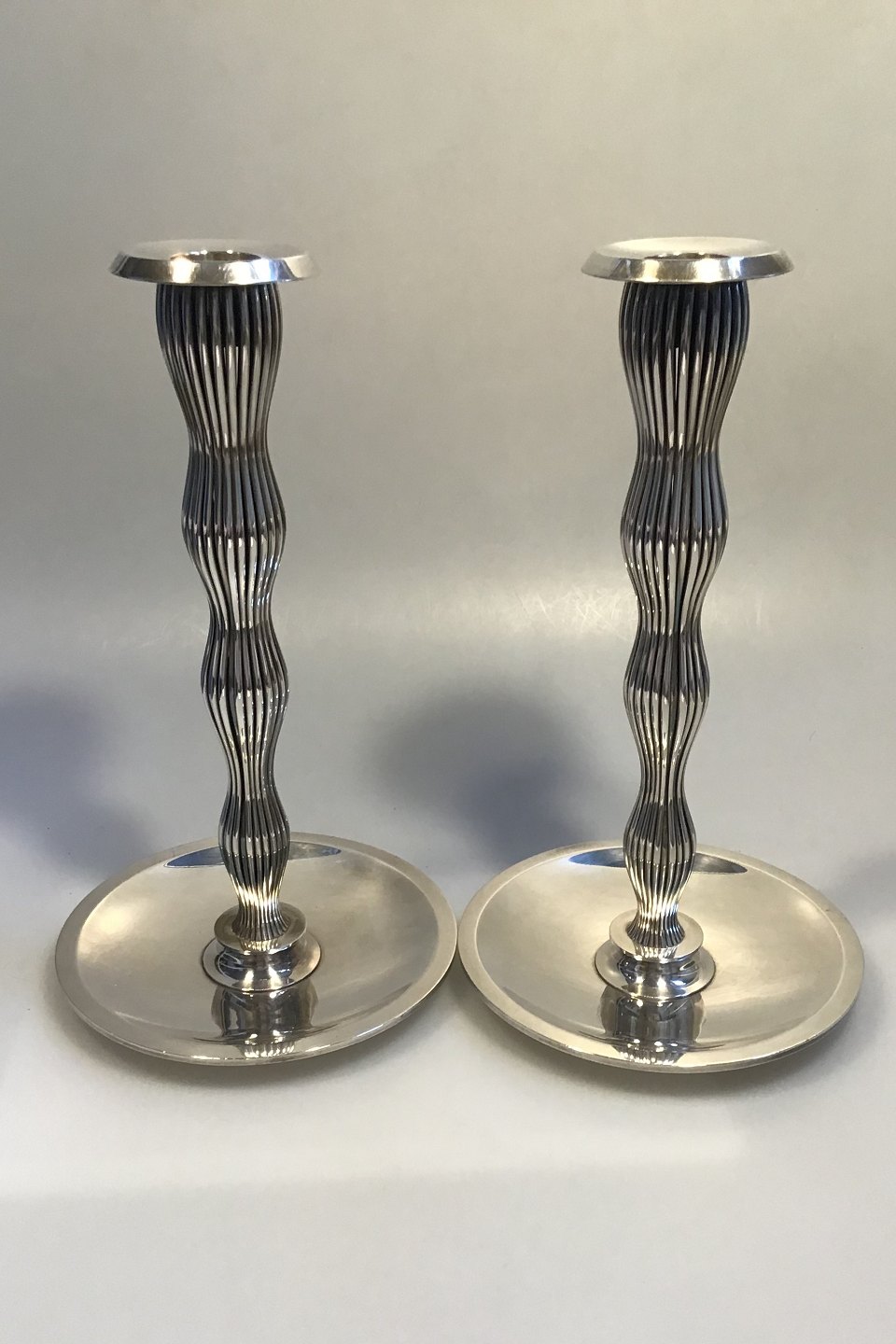 F. Hingelberg Sterling Sølv Lysestager(2) designet af Svend Weihrauch