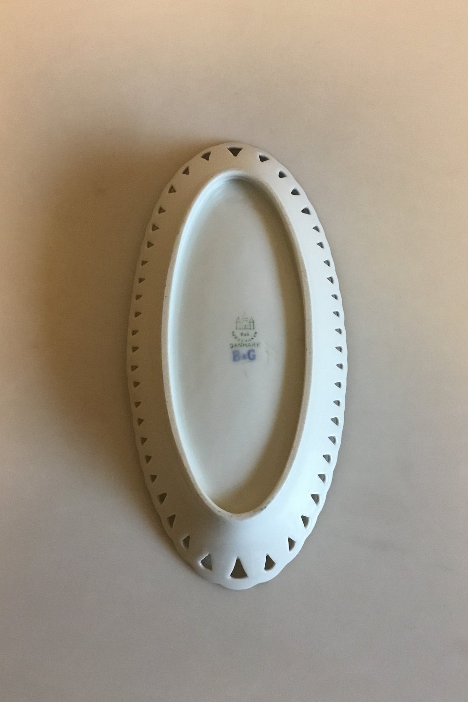 Bing & Grøndahl Måge med Guld Aflangt fad med gennembrudt kant. Måler 23 cm x 11 cm