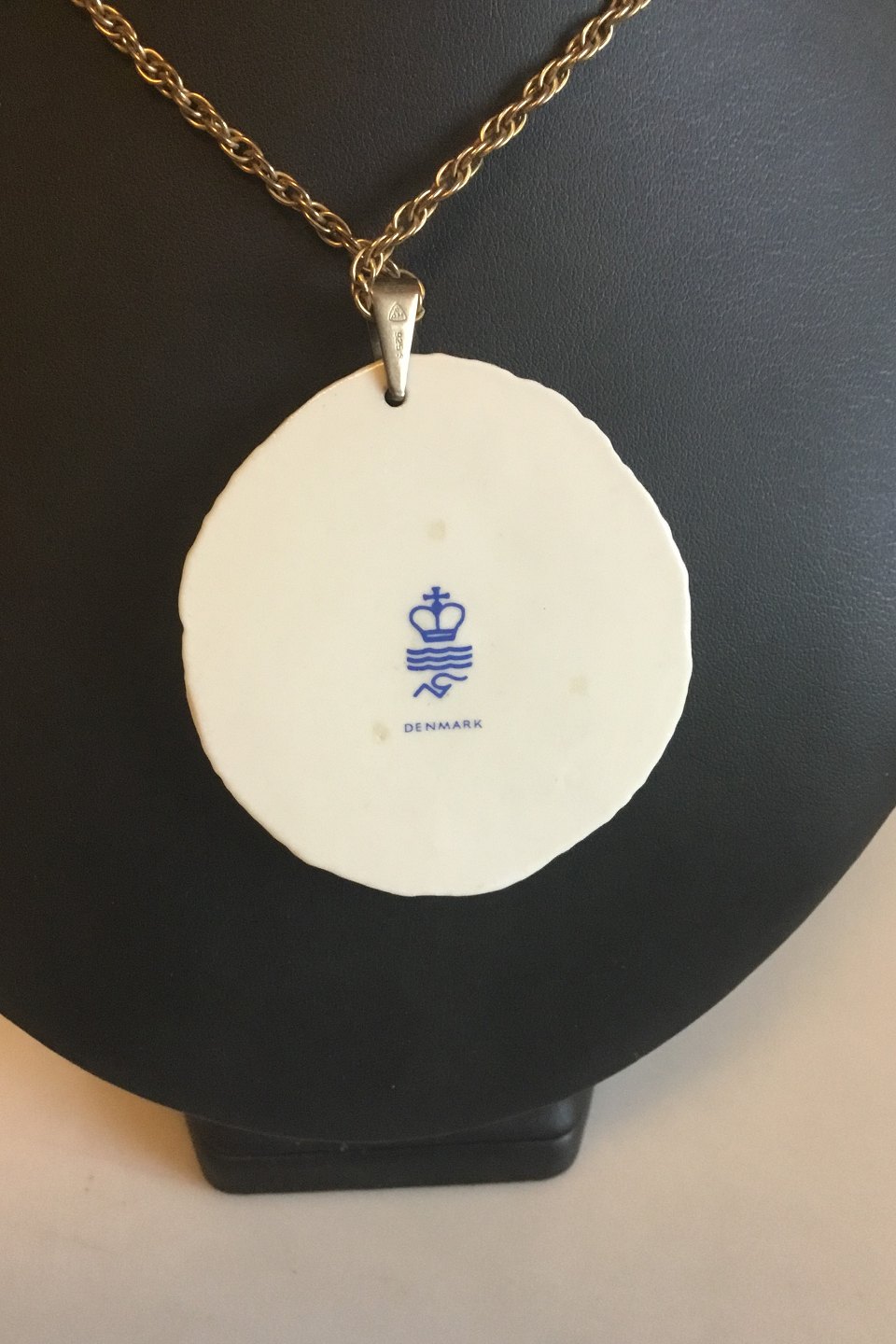 Royal Copenhagen Vedhæng a fporcelæn med gulddekoration. Designet af Nils Thorson. Sterling sølv af Anton Michelsen. Måler 6,2 cm, kæden er 60 cm