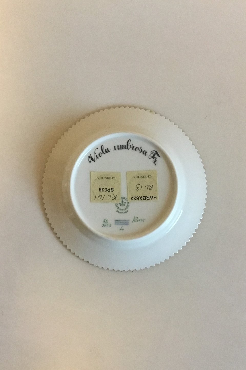 Royal Copenhagen Flora Danica Cake Plate No 20/3552. Latin Name: Viola umbrosa Fr. Measures 14.3 cm / 5 5/8 in. Chipped