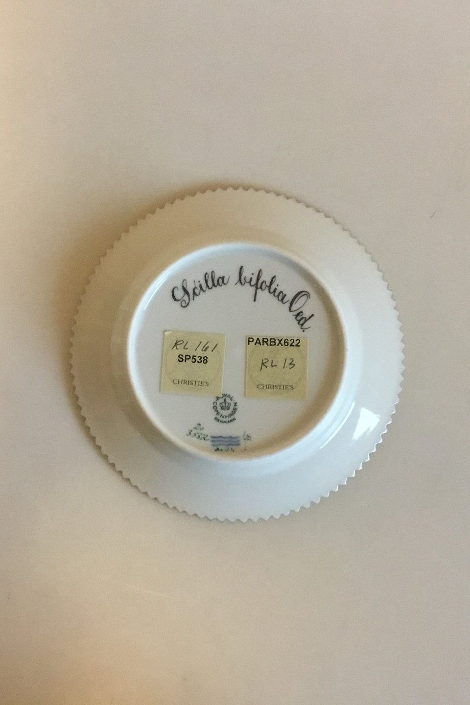 Royal Copenhagen Flora Danica Cake Plate No 20/3552. Latin Name: Scilla bifolia Oed. Measures 14.3 cm / 5 5/8 in.