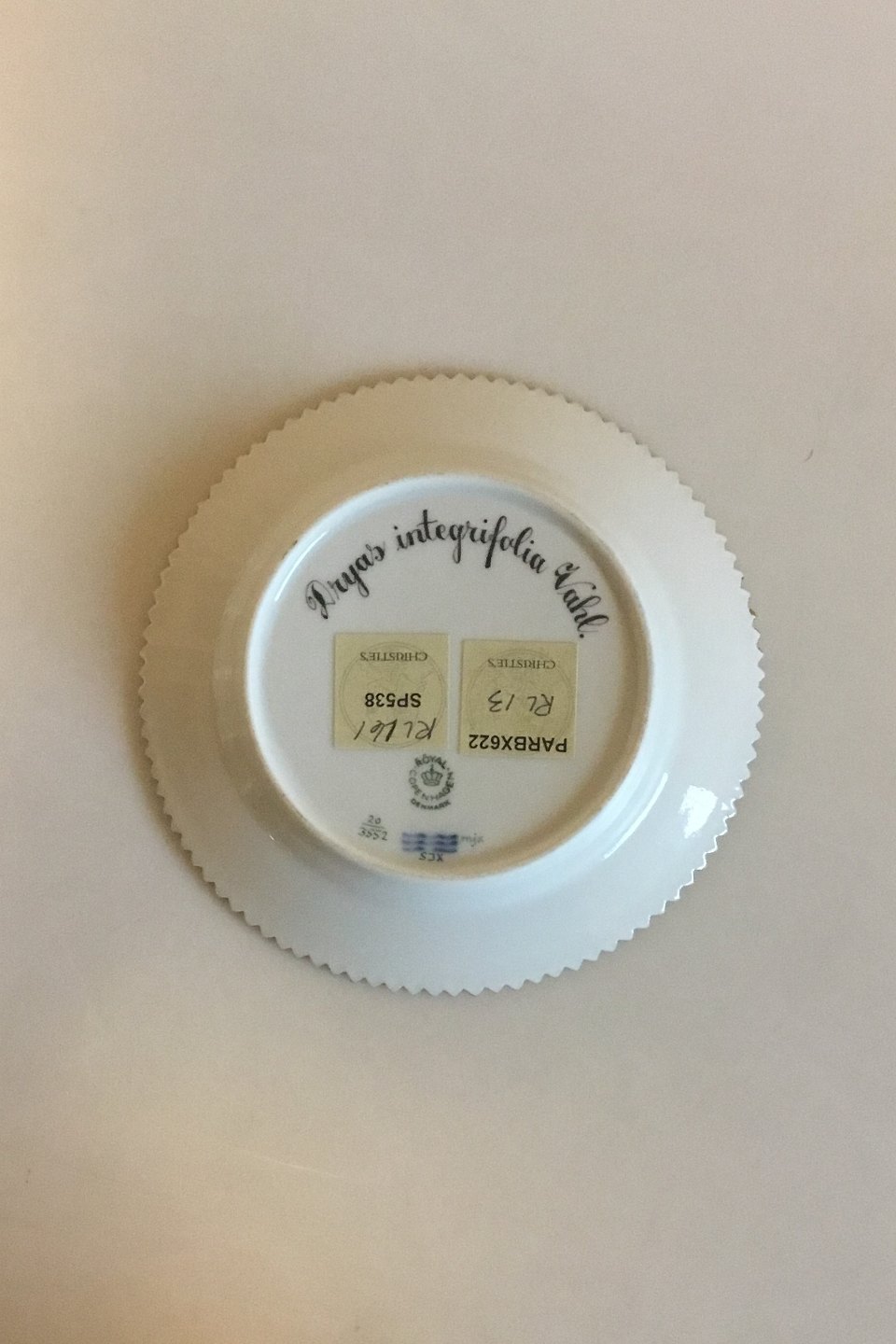 Royal Copenhagen Flora Danica Cake Plate No 20/3552. Latin Name: Dryas integrifolia Vahl. Measures 14.3 cm / 5 5/8 in.