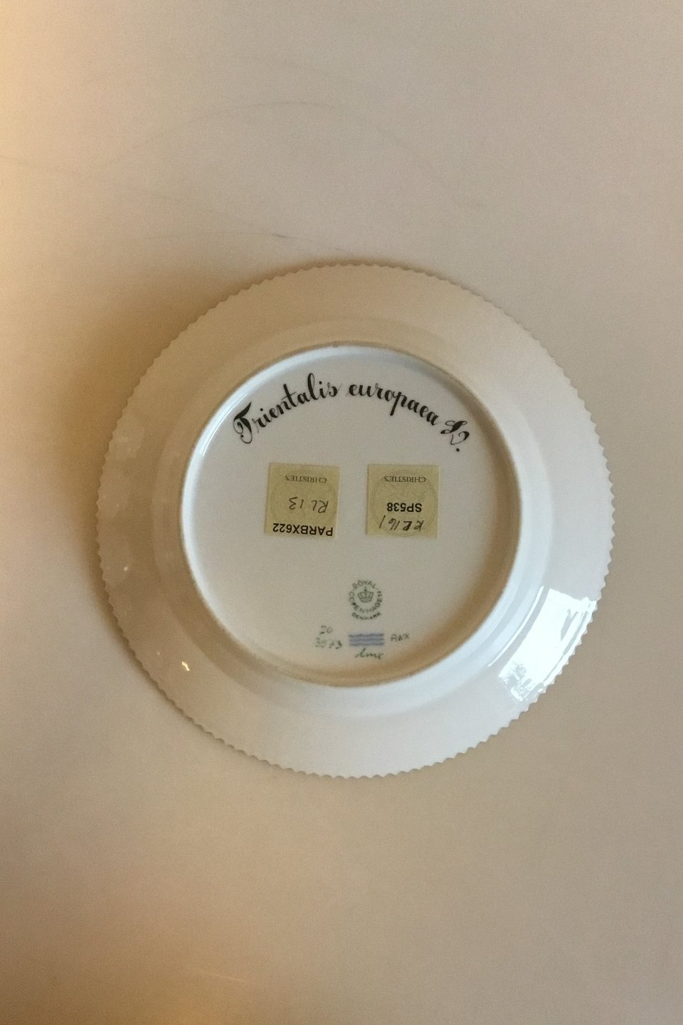 Royal Copenhagen Flora Danica Salat Tallerken No 20/3573. Latinsk navn: Trientalis europaea L. Måler 19,2 cm