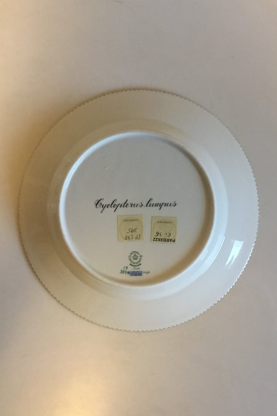 Royal Copenhagen Flora Danica Fish Plate No 20/3549. Latin name: Cyclopterus lumpus. Measures 25.8 cm / 10 5/32 in.