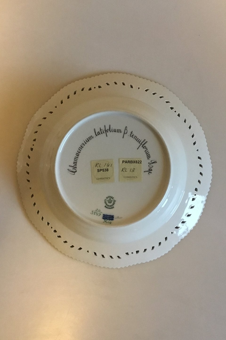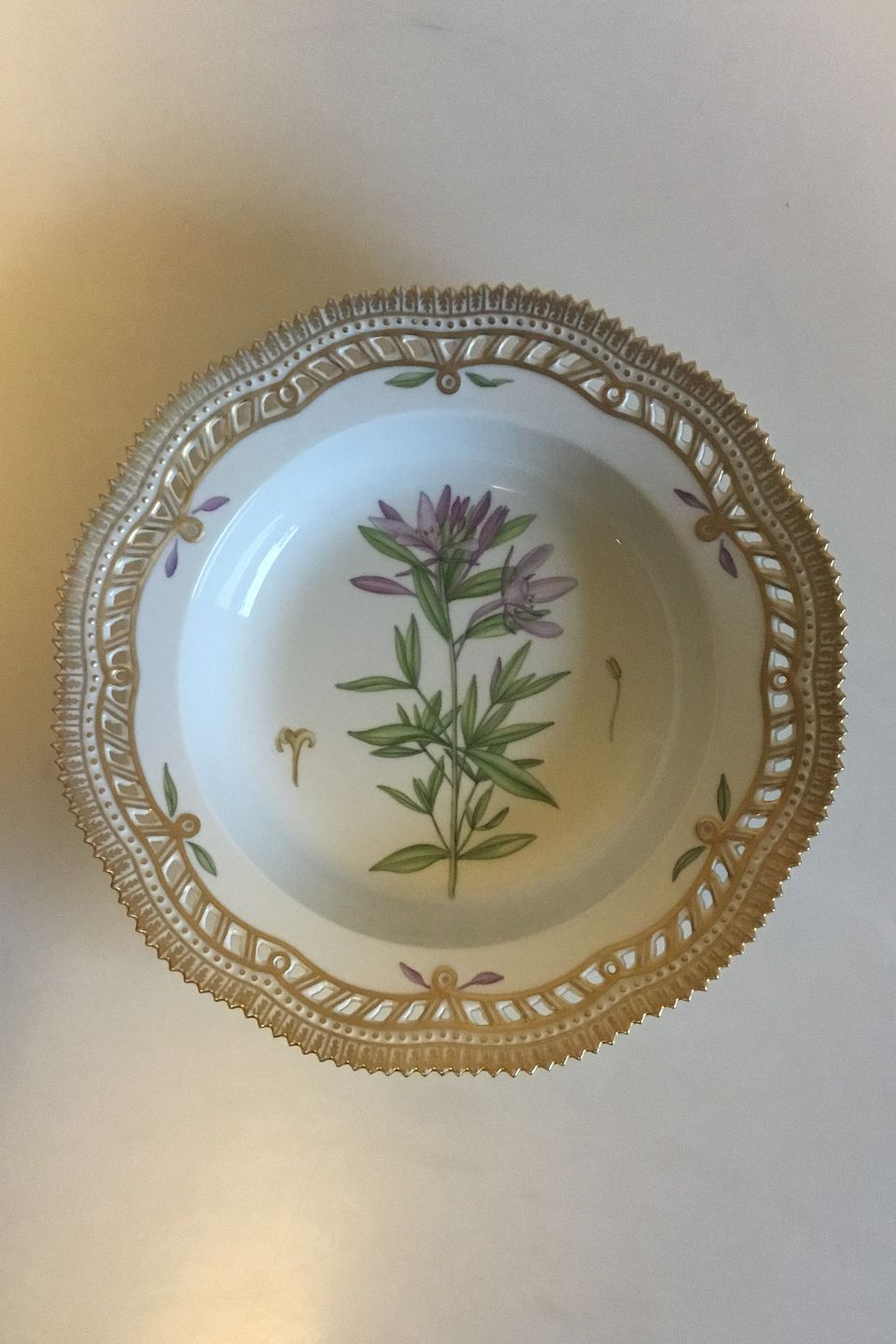 Royal Copenhagen Flora Danica Dyb tallerken med gennembrudt kant No 20/3547.