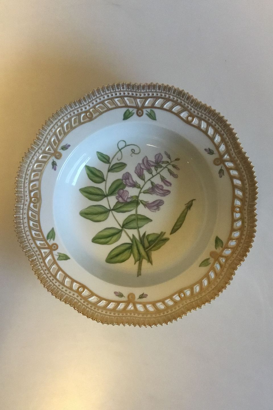 Royal Copenhagen Flora Danica Dyb tallerken med gennembrudt kant No 20/3547.