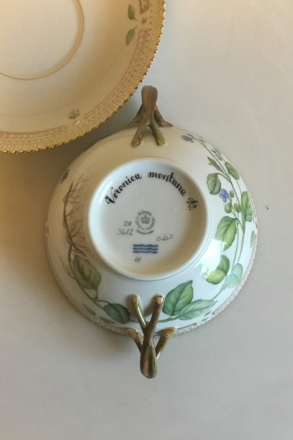 Royal Copenhagen Flora Danica Bouillon Cup with saucer No 20/3612 Latin Name Veronica montana L. Holds 40 cl / 13 1/2 oz.