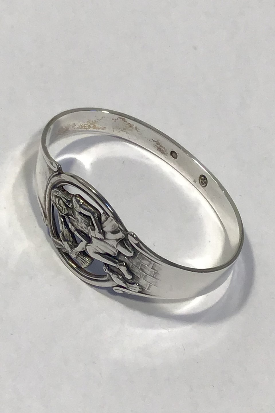 Dansk Sølv Servietring (Pige med duer) Måler 5 cm x 3.3 cm Vægt 15 gr