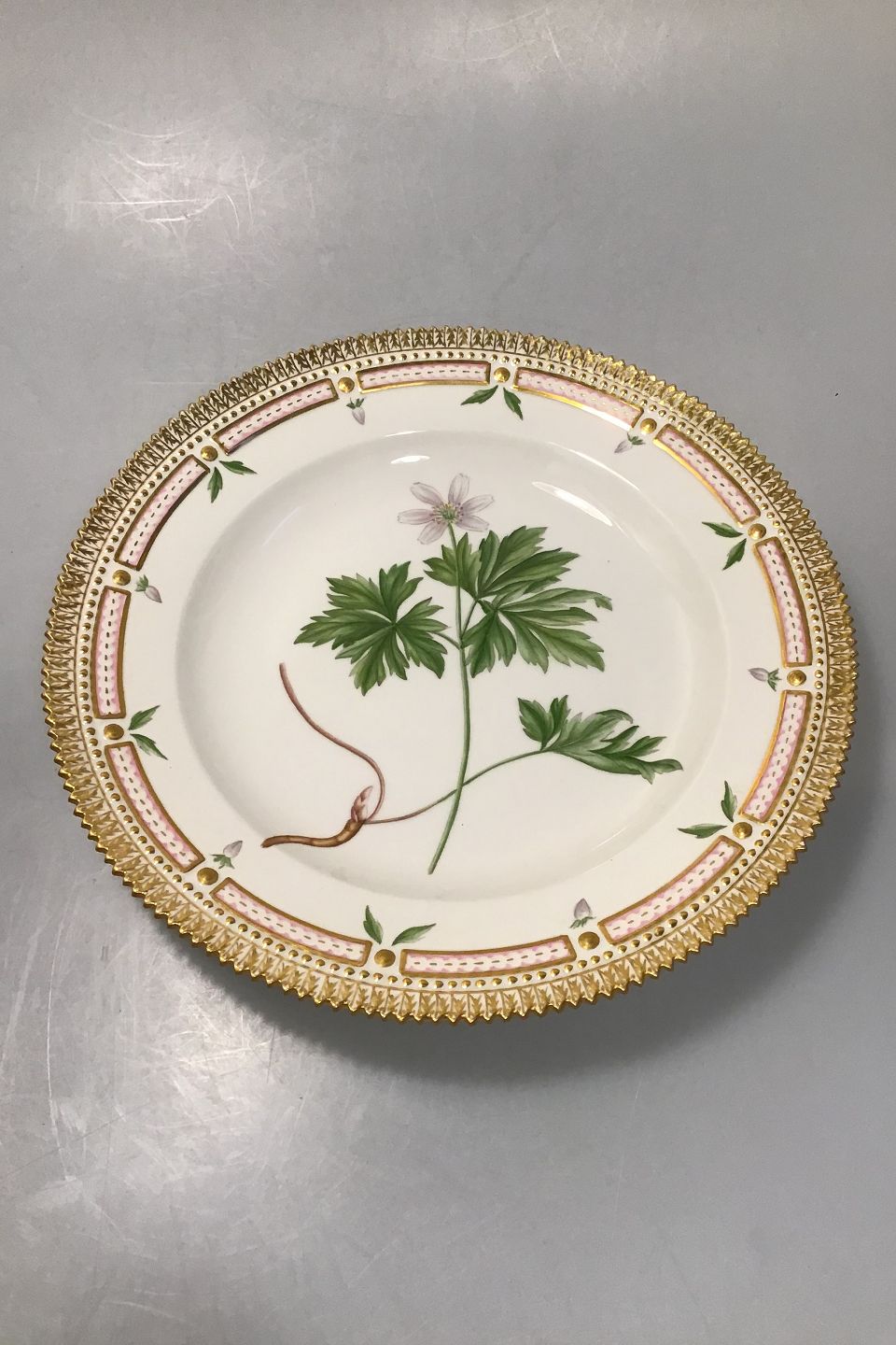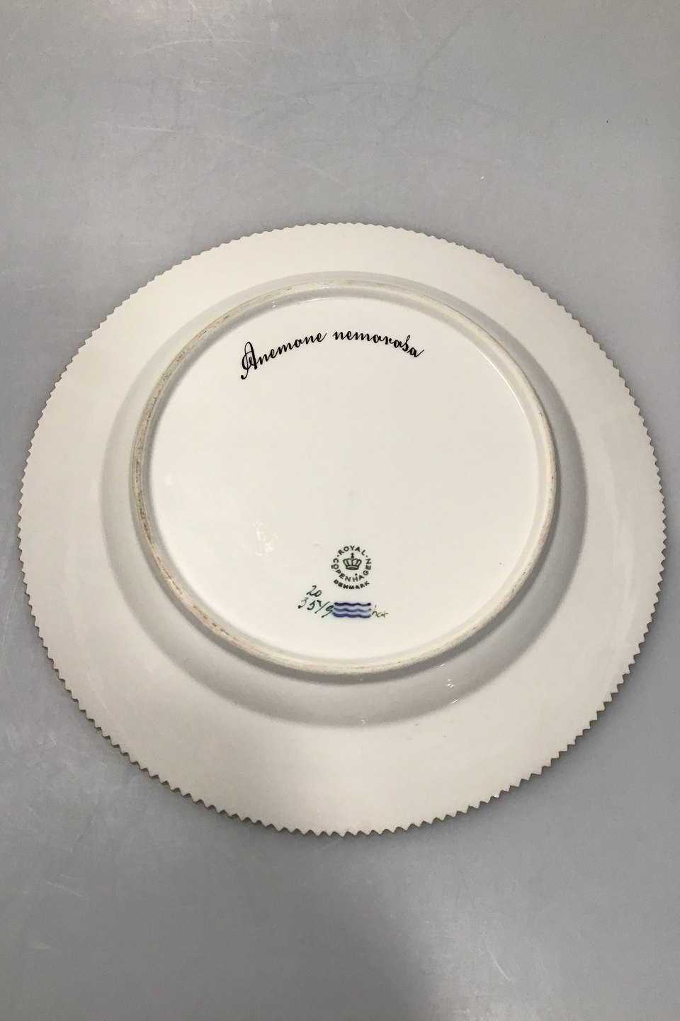 Royal Copenhagen Flora Danica Tallerken No 20/3549. Latinsk navn: Anemone nemorosa. (Hvid anemone) Måler 25,8 cm.