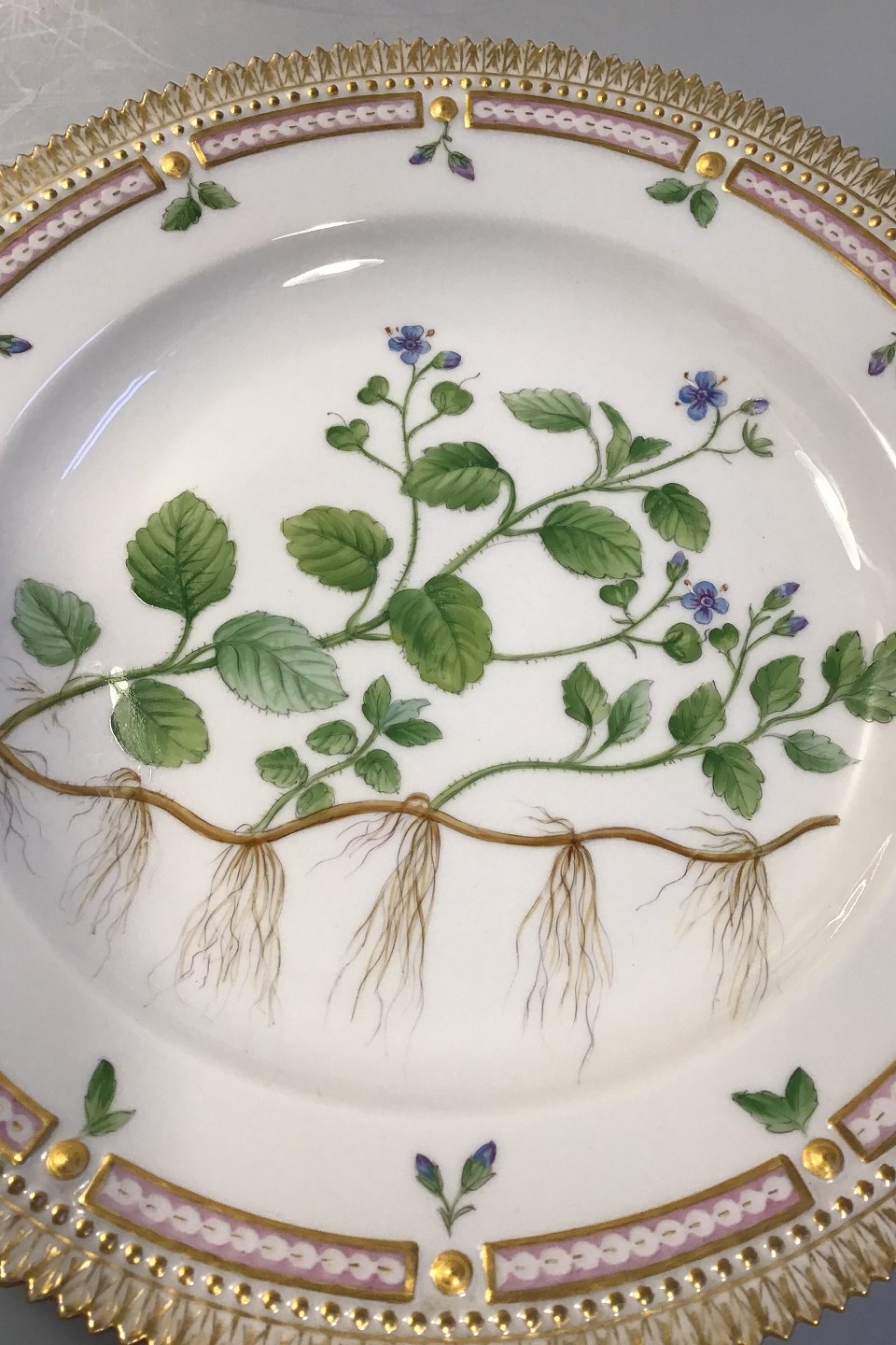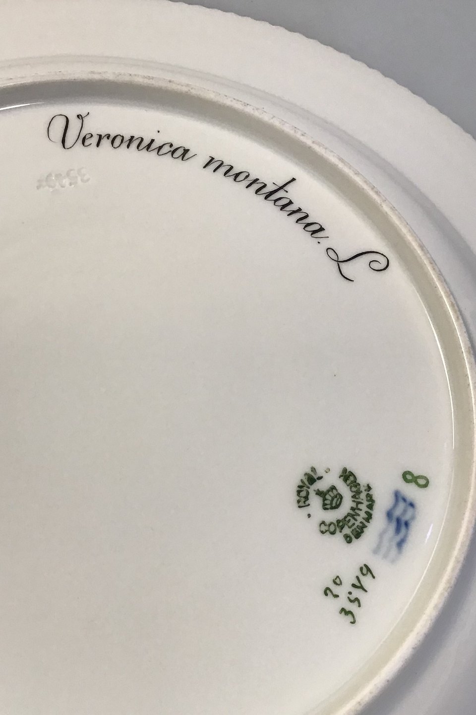 Royal Copenhagen Flora Danica Tallerken No 20/3549. Latinsk navn: Veronica montana L. (Bjergærenpris) Måler 25,8 cm.