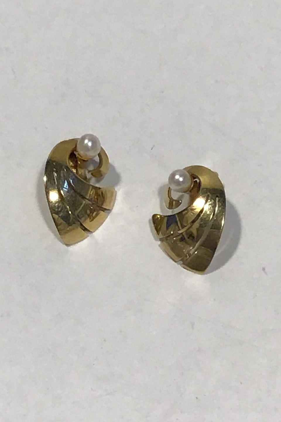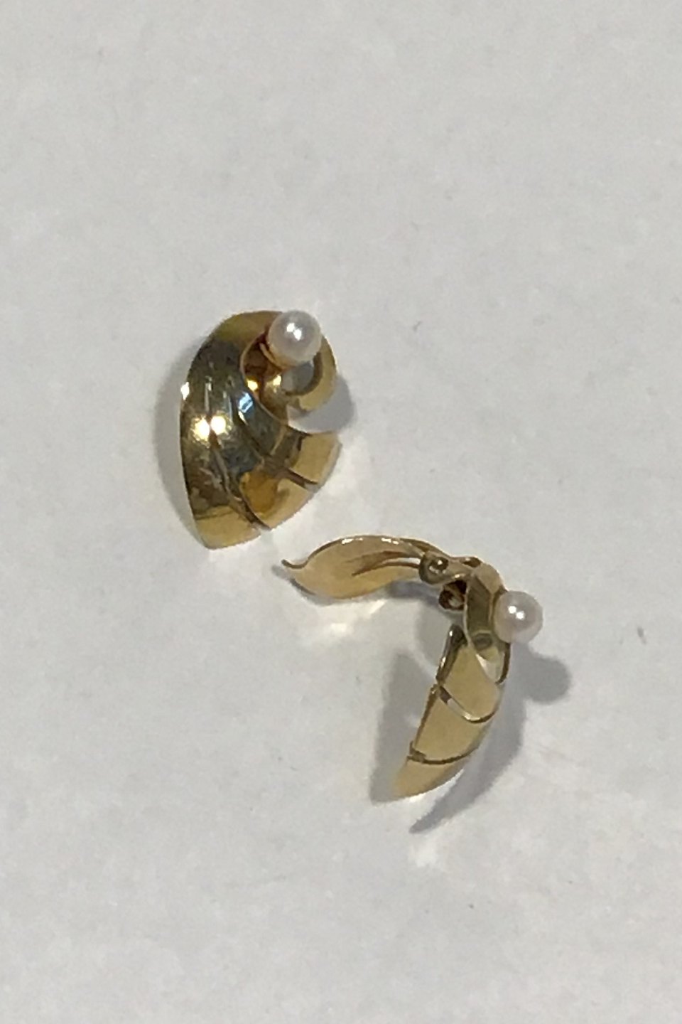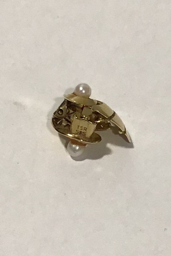 Th. Skat-Rørdam, 14 K Guld Øreclips m/perle Måler 1.3 cm x 1.8 cm Vægt samlet 3.1 gr