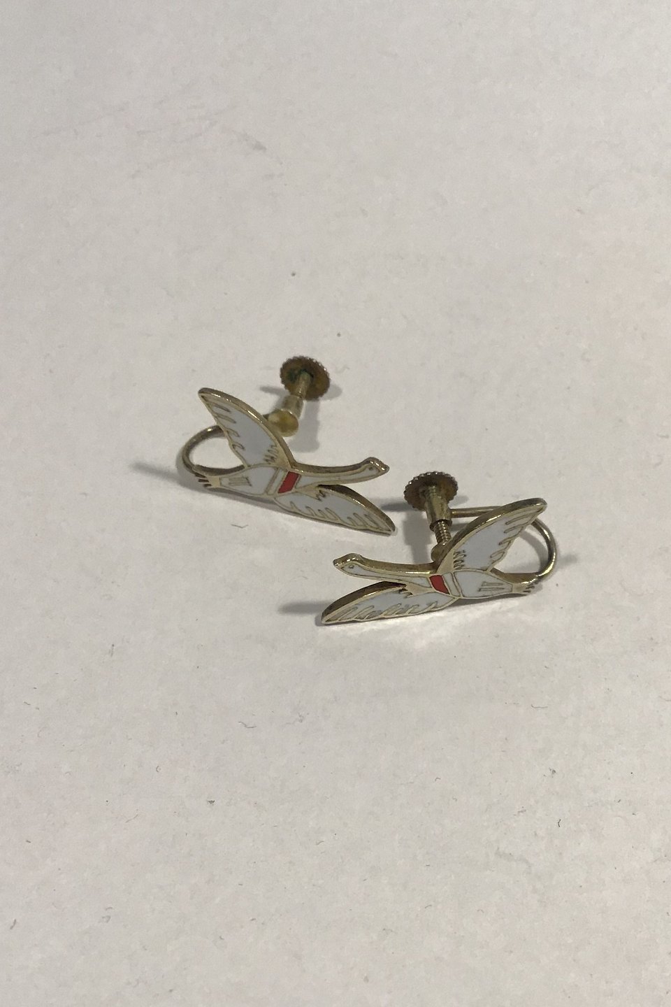 Erik Magnussen Sterling Silver/Enamel Earrings(screws), The Nordic Swans Measures 1.5 cm x 2.3 cm(0 19/32 in x 0 29/32 in) Weight 4.6 gr/0.16 oz