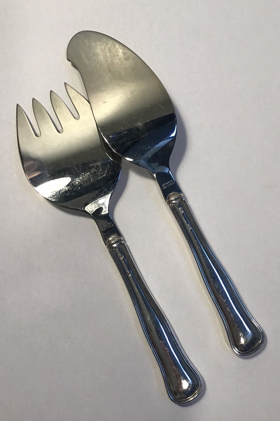 W&S Sørensen Dobbeltriflet/Old Danish Silver/Steel Fish Serving Set Measures respectively 20.5 cm and 23.2 cm(8 5/64 in and 9 9/64 in)