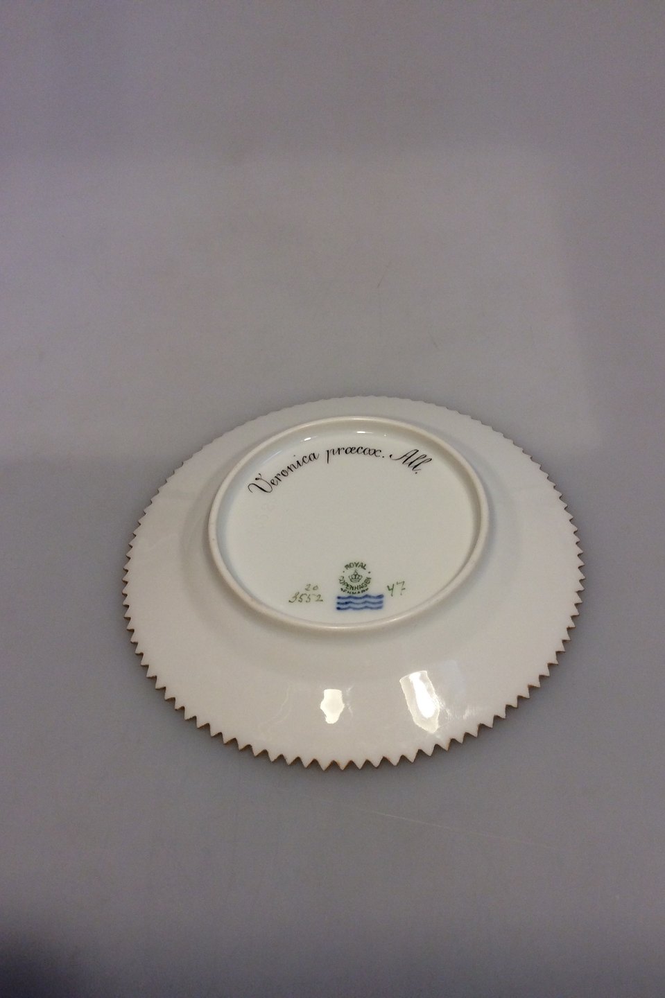 Royal Copenhagen Flora Danica Kagetallerken No 20/3552. Latinsk tekst: Veronica præcox. All. Måler 14,3 cm.
