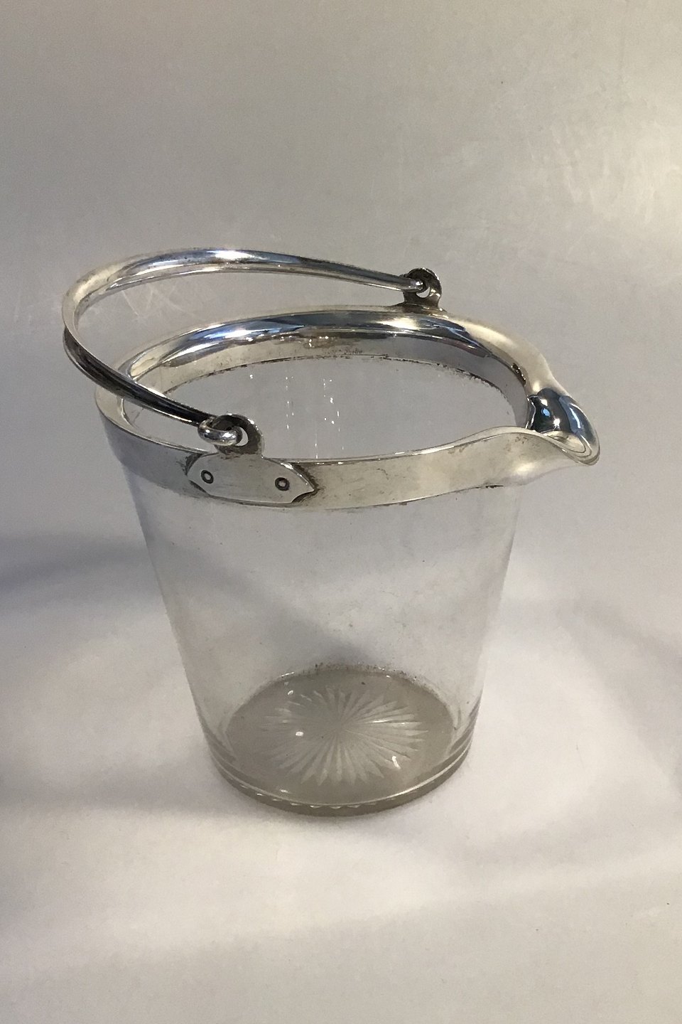 English Ice bucket with Sterling Silver mountings Measures( at spout) 14.4 cm(5 45/64 in)