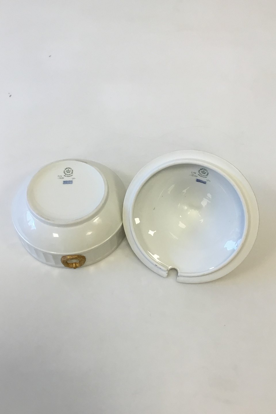 Royal Copenhagen Guld Vifte Skål med låg No 11534. Måler 17,5 cm diameter x 17 cm