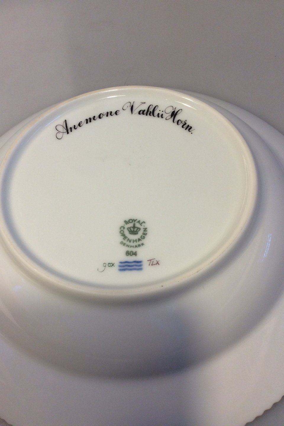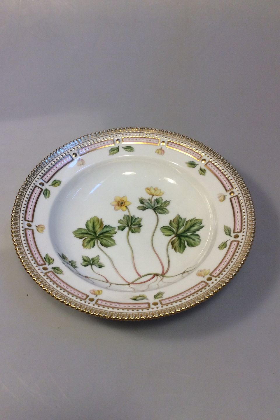 Royal Copenhagen Flora Danica Deep Plate No 20/3546 eller 604. Latin name: Anemone Vahlu Horn Measures 22.3 cm / 8 25/32 in.
