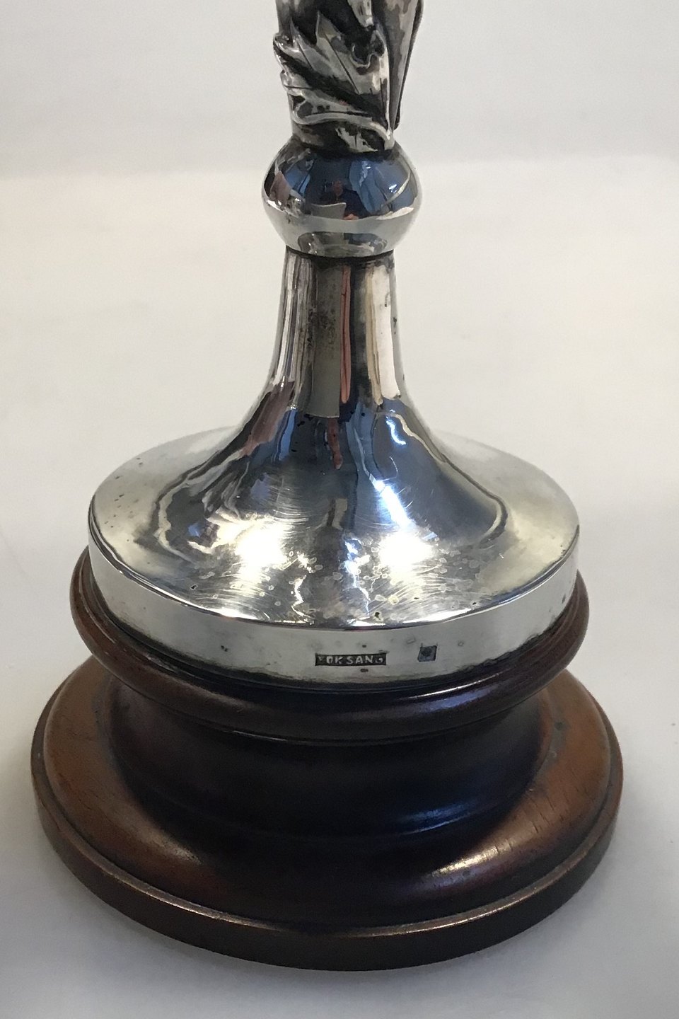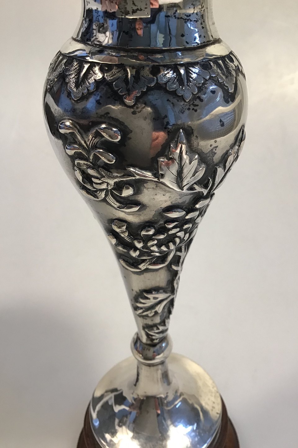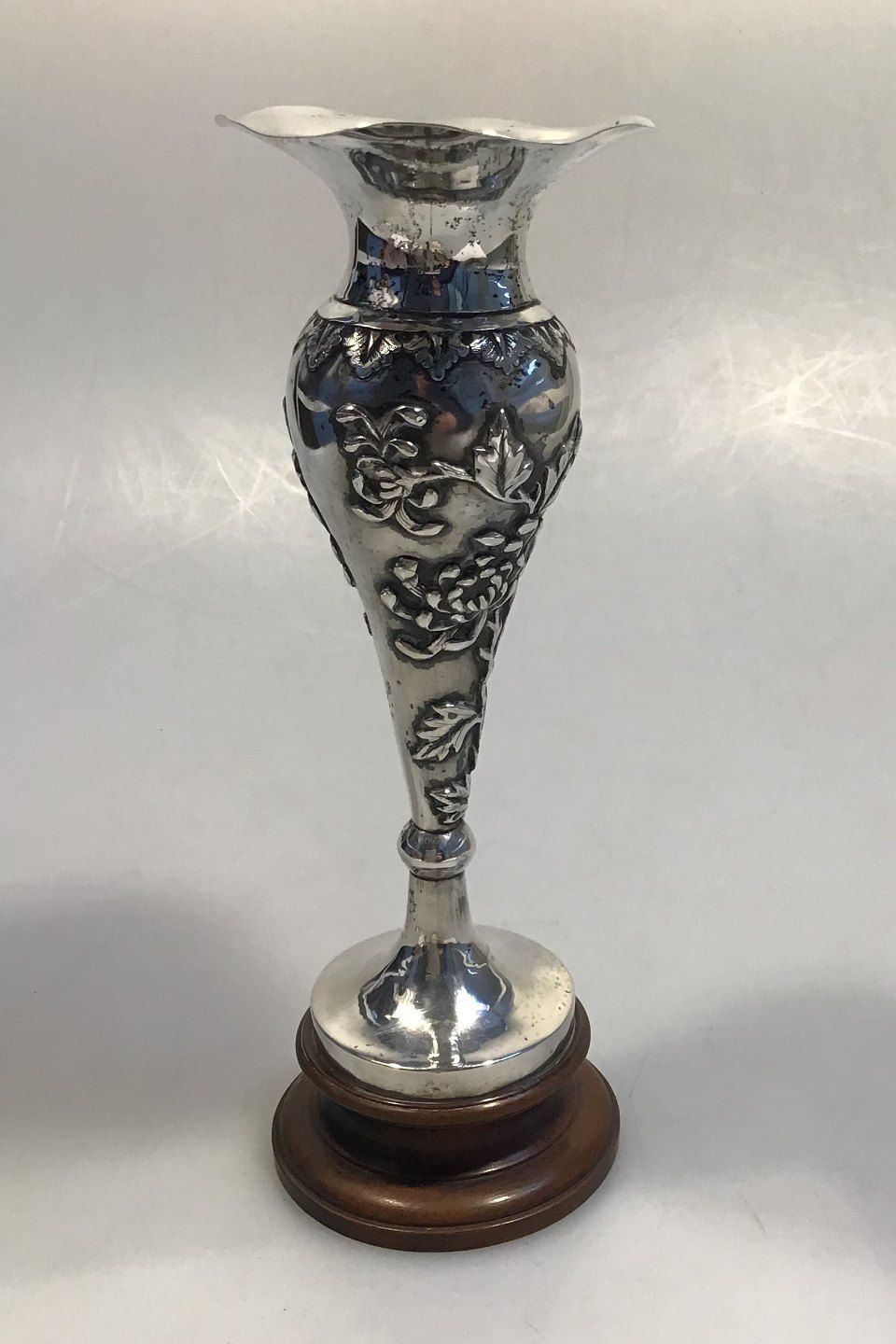 Kinesisk Yok Sang Sølv Vase Blomstermotiv og Træbase Måler 20 cm(incl base)Vægt 207.8 gr (incl base)