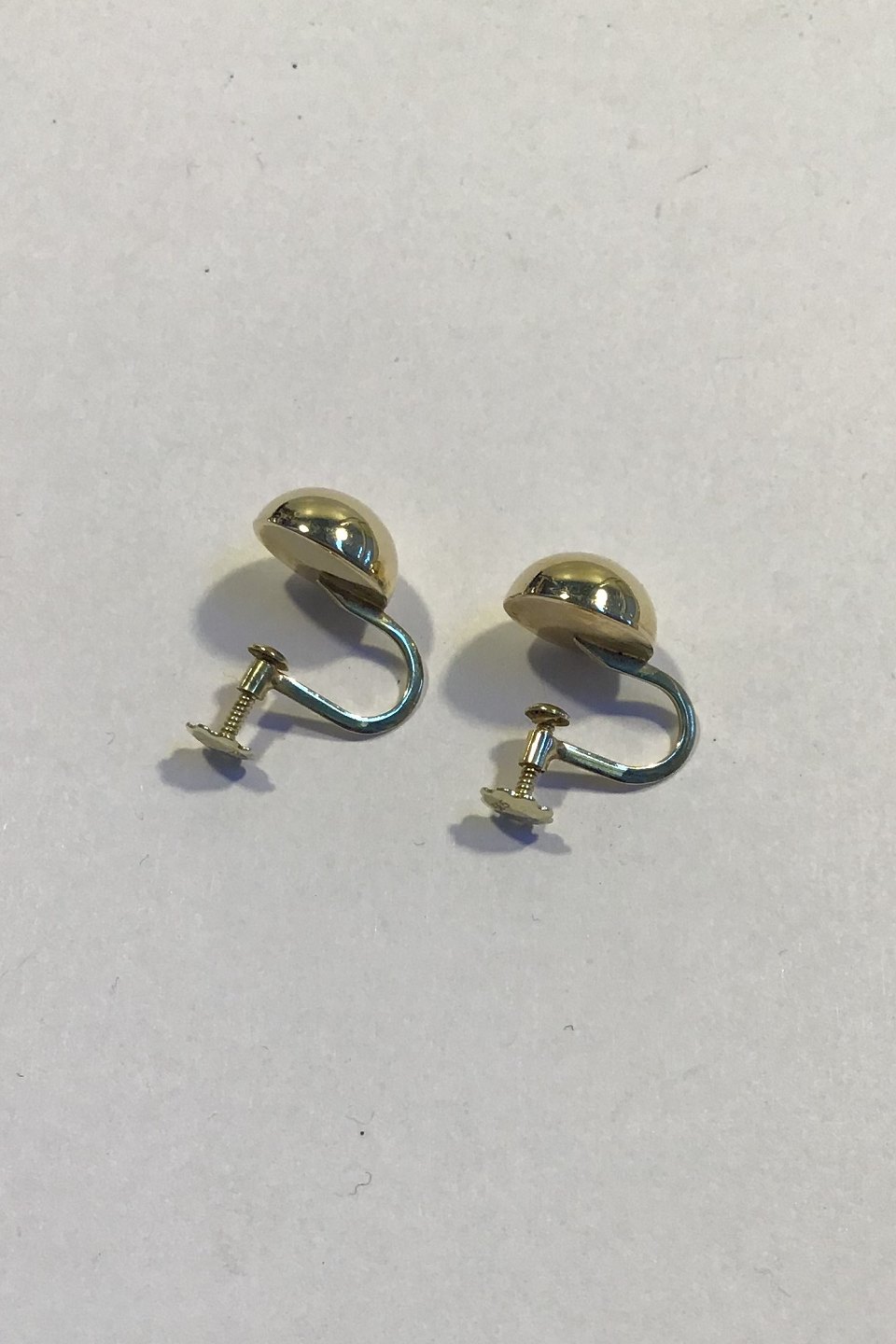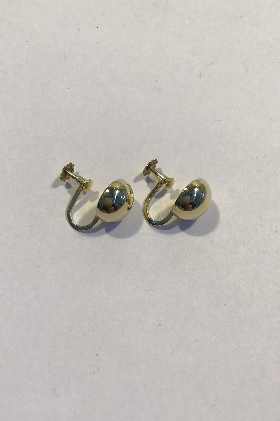 Hermann Siersbøl 14K Guld Øreskruer Måler 1 cm Diam Samlet Vægt 2.5 gr