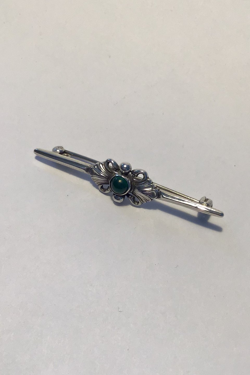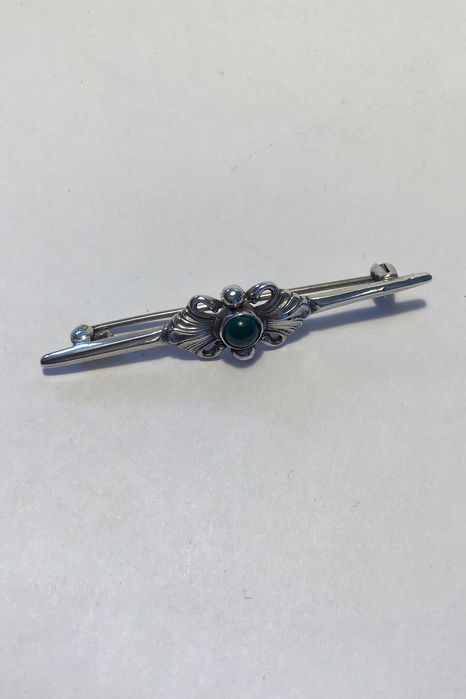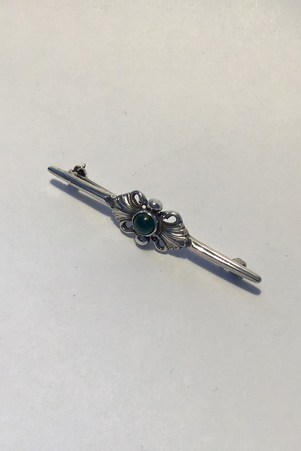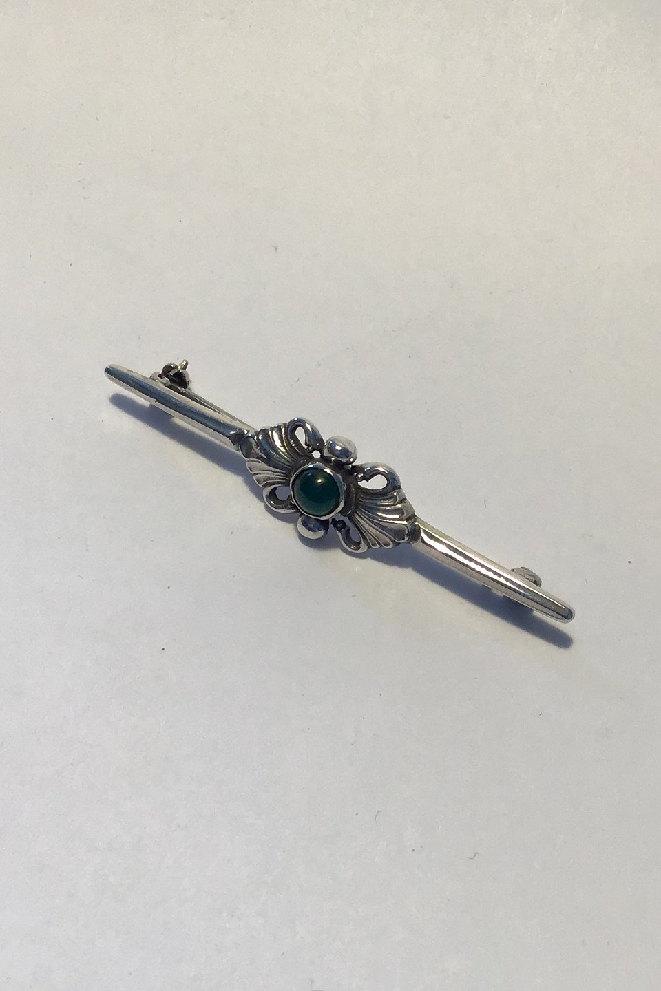 Georg Jensen & Wendel Sterling Sølv Broche No 214. Grøn Agat Måler 5.5 cm. Vejer ca 6 gram. Fra 1945-1952.