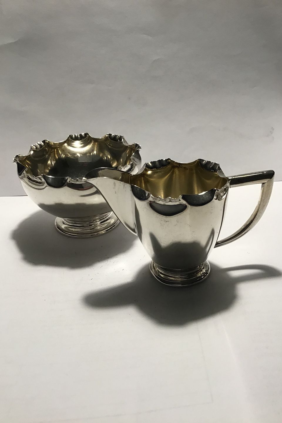 P Hertz Sølv Sukker og Flødesæt Måler H Flødekande 7.6 cm, Sukkerskål 6.5 cm Samlet vægt 164 gr