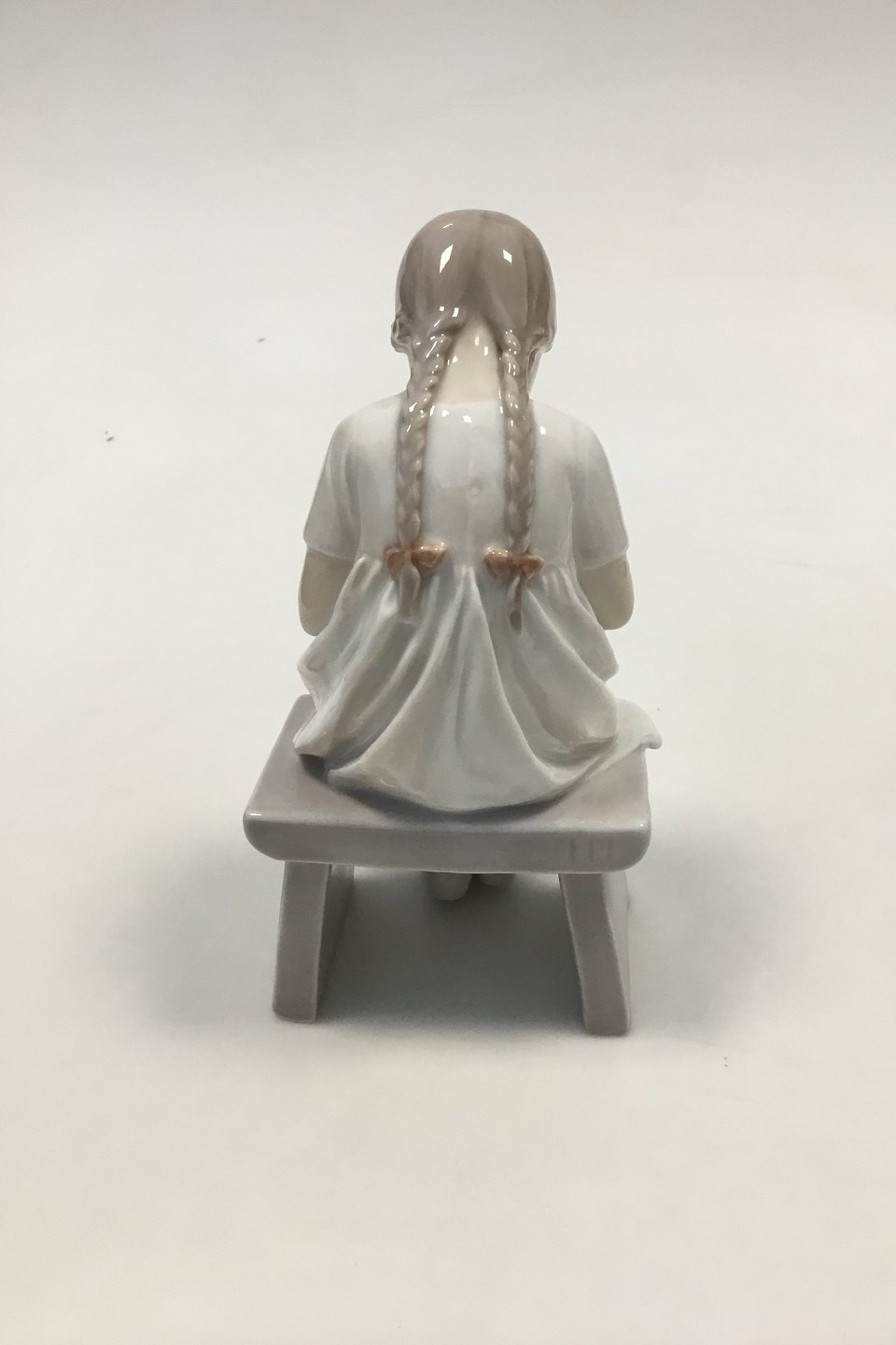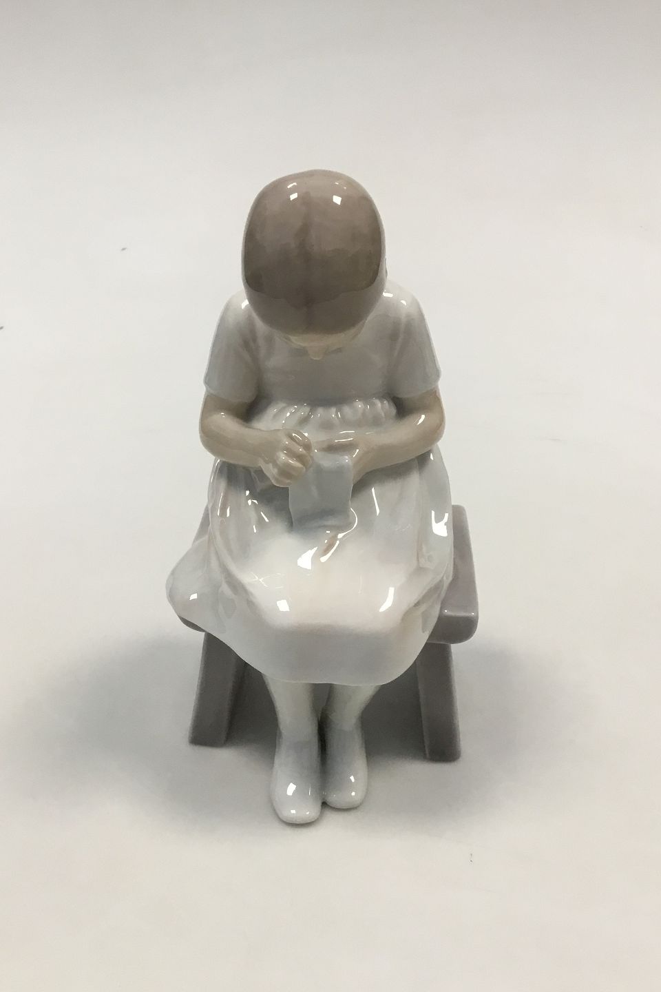 Bing & Grondahl Figurine of embroidery girl on stool No 1879. Measures 18 cm / 7 3/32 in.