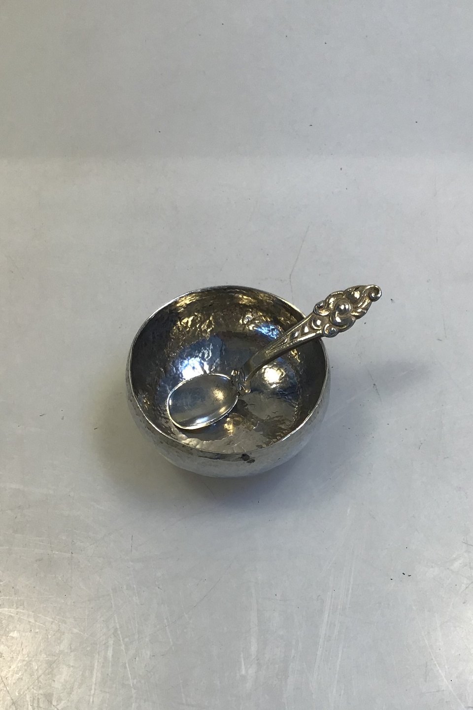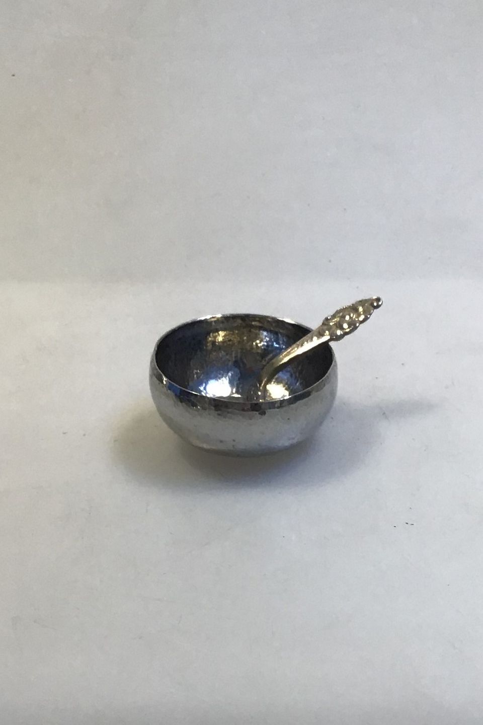 Sterling Silver Salt Cellar with Silver Salt Spoon Measures Diam 5 cm(1 31/32 in)