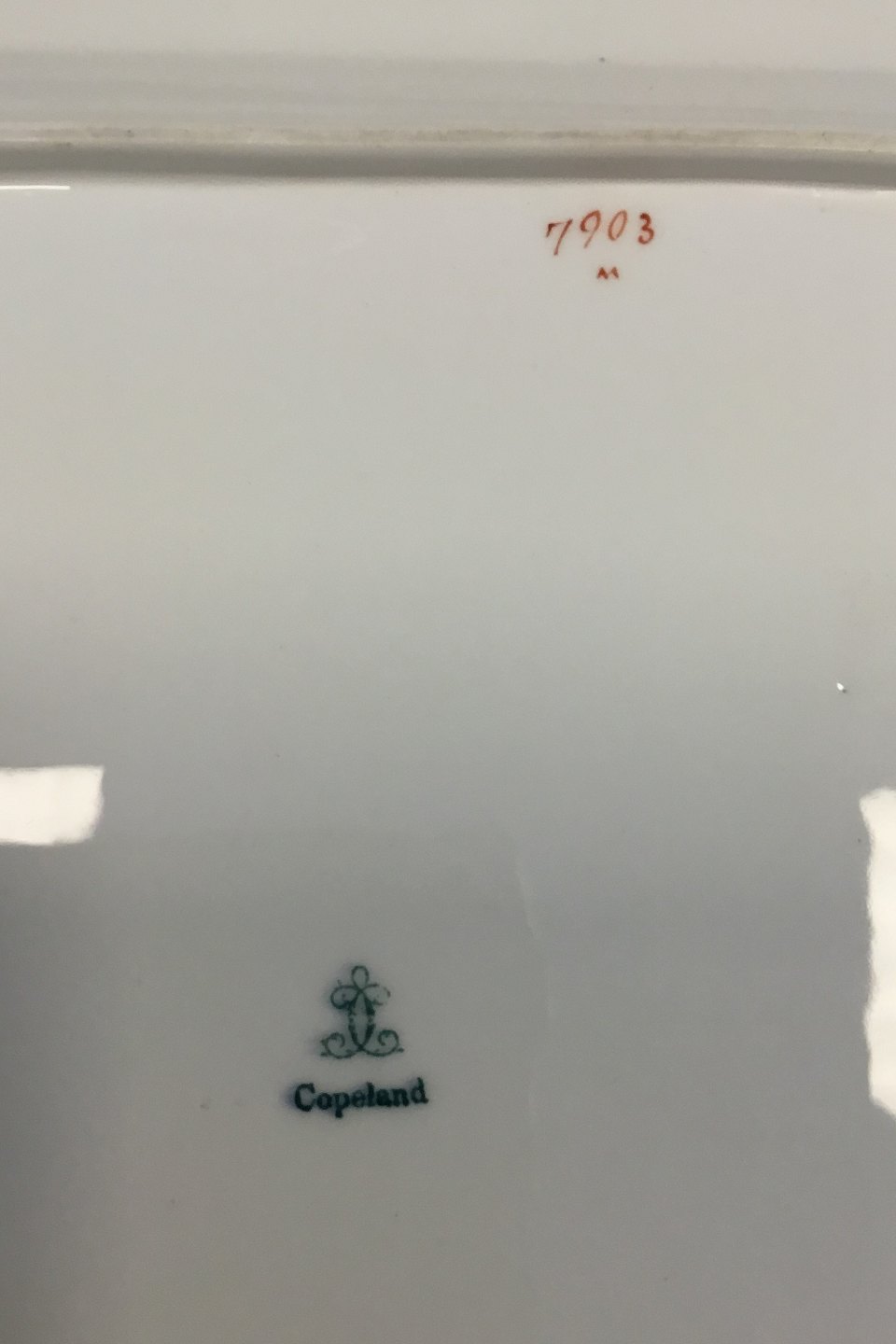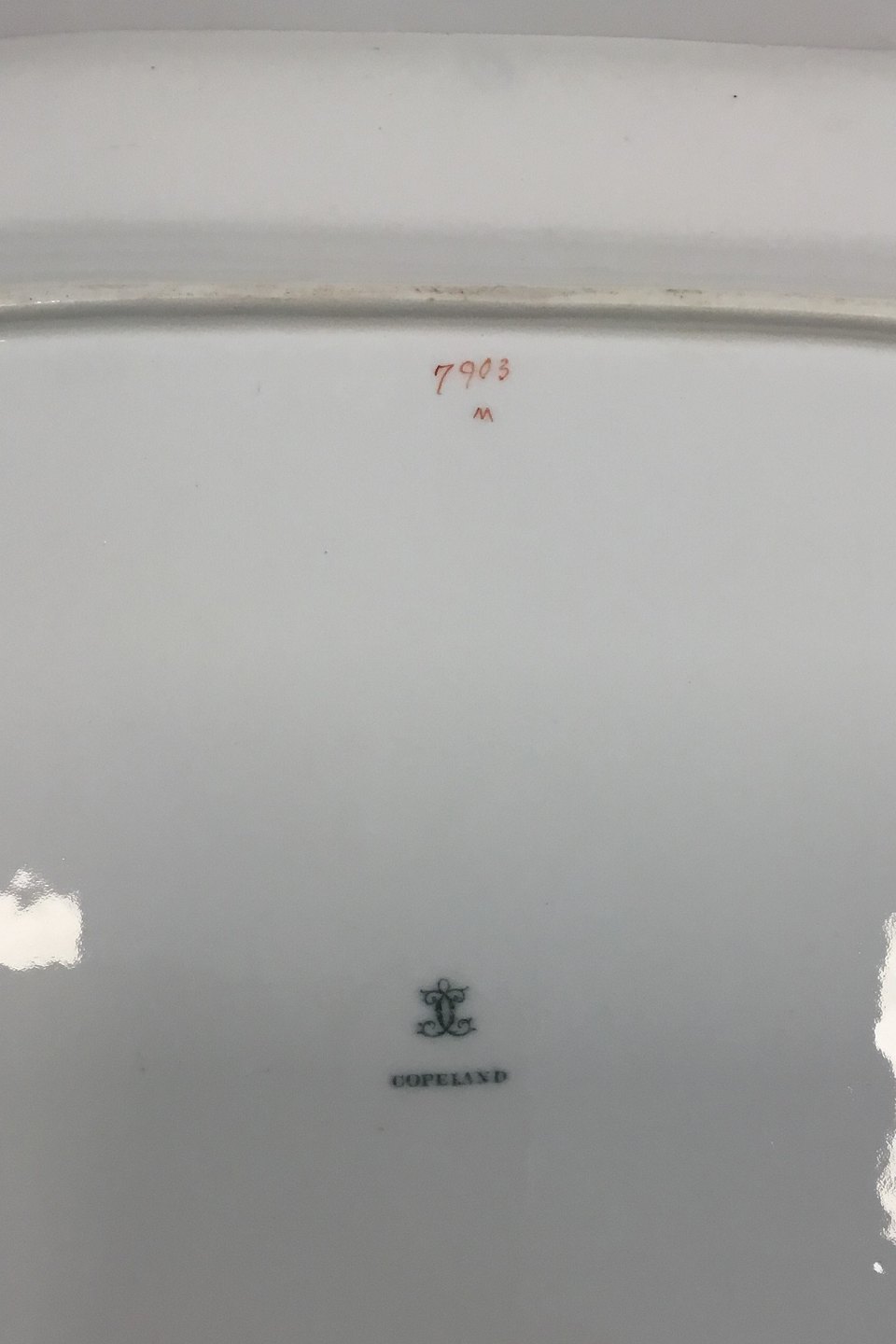 Copeland Fajance Sæt på tre stegefade. Måler 41,5 cm x 31 cm, 47 cm x 35 cm, 51,5 cm x 39 cm