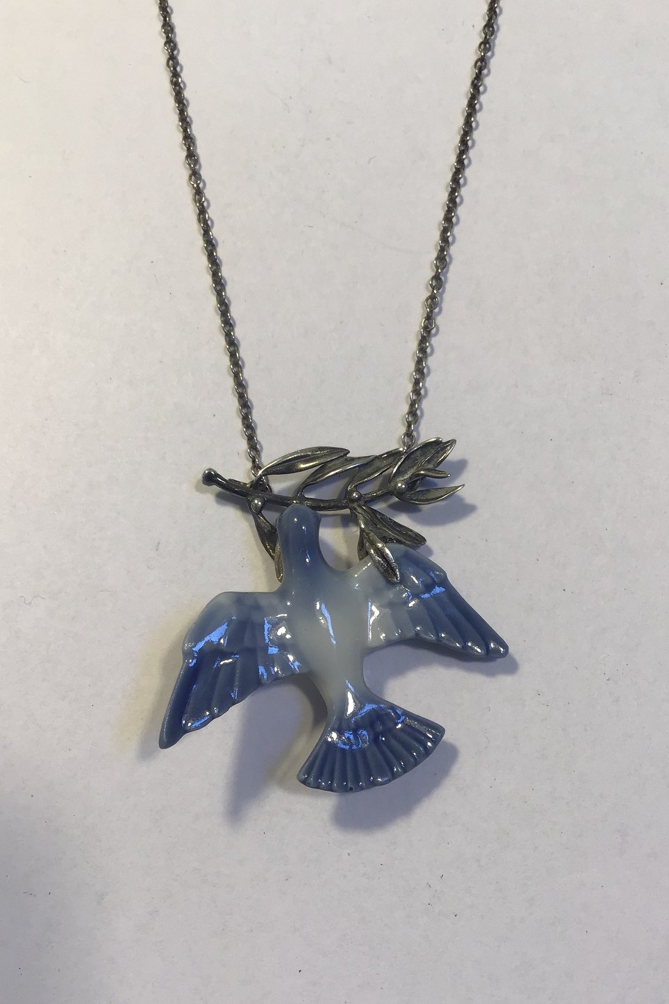 Royal Copenhagen Necklace with Sterling Silver foliage and Dove of Porcelain Measures 40 cm(15 3/4 in)