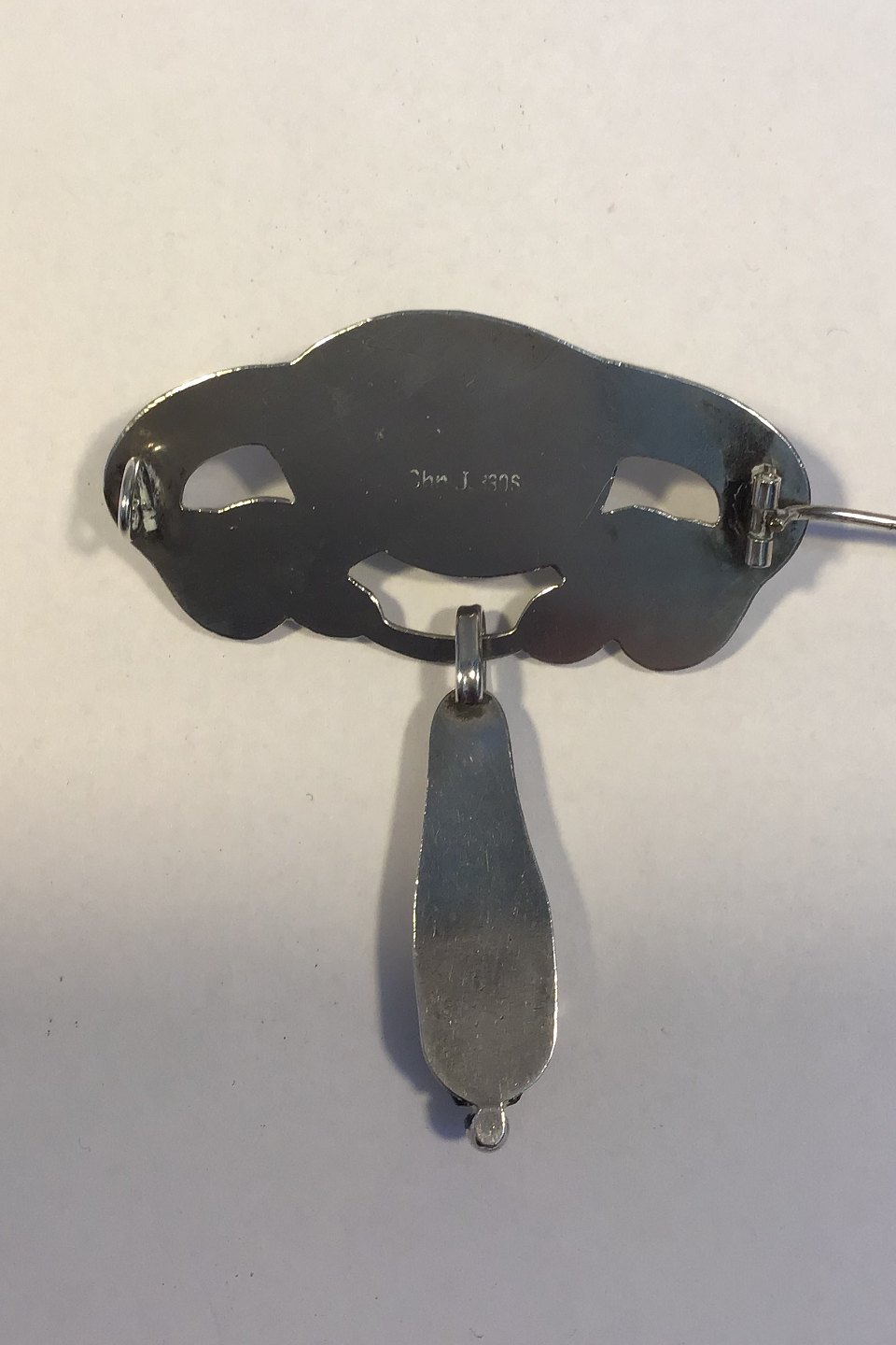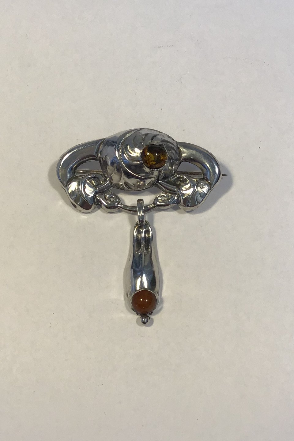 Peter Christian Jensen Art Nouveau Sølv Broche med Rav Måler 5.3 cm x 6.2 cm Vægt 9.6 gr