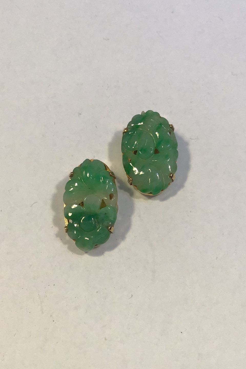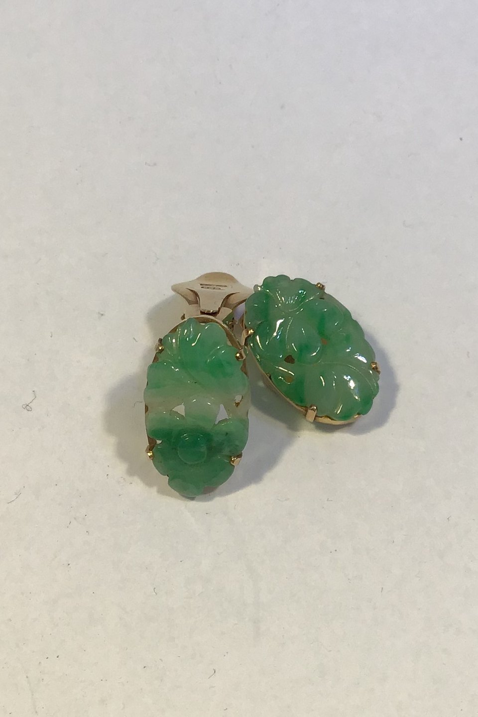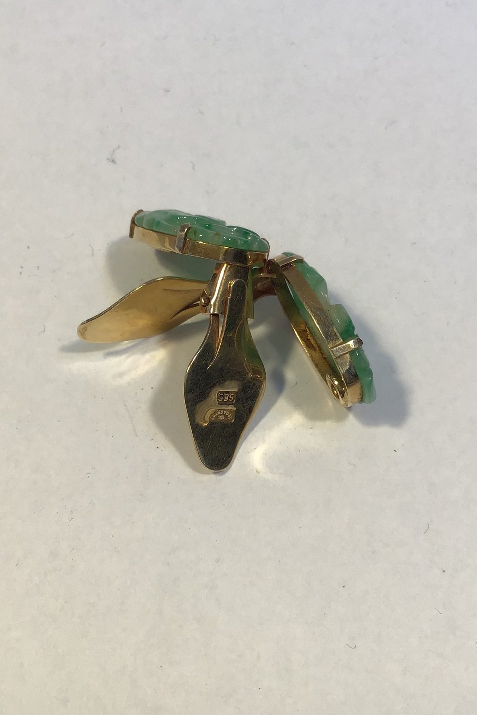 A Dragsted 14 K Guld Earrings (clips) with Jade Measures 2 cm x 1.2 cm(0 25/32 in x 0 15/32 in) Combined Weight 6.2 gr/0.22 oz