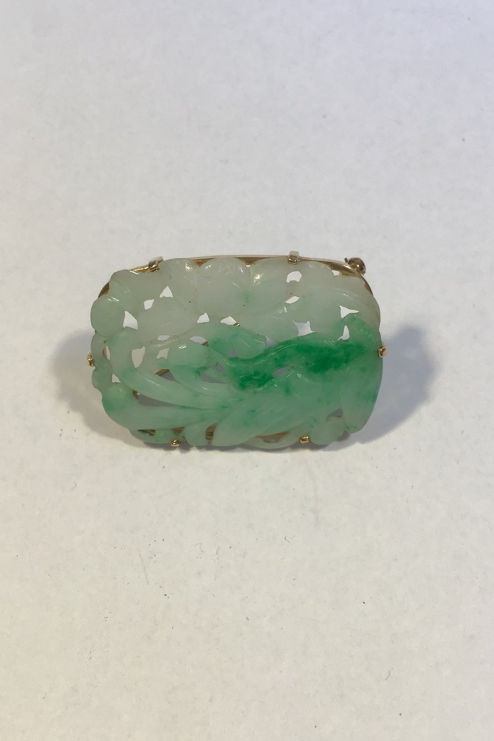 A Dragsted 18 K Gold Brooch with Jade (Bird and foliage) Measures 4.1 cm x 2.8 cm( 1 39/64 in x 1 7/64 in) Weight 10.7 gr/0.34 oz