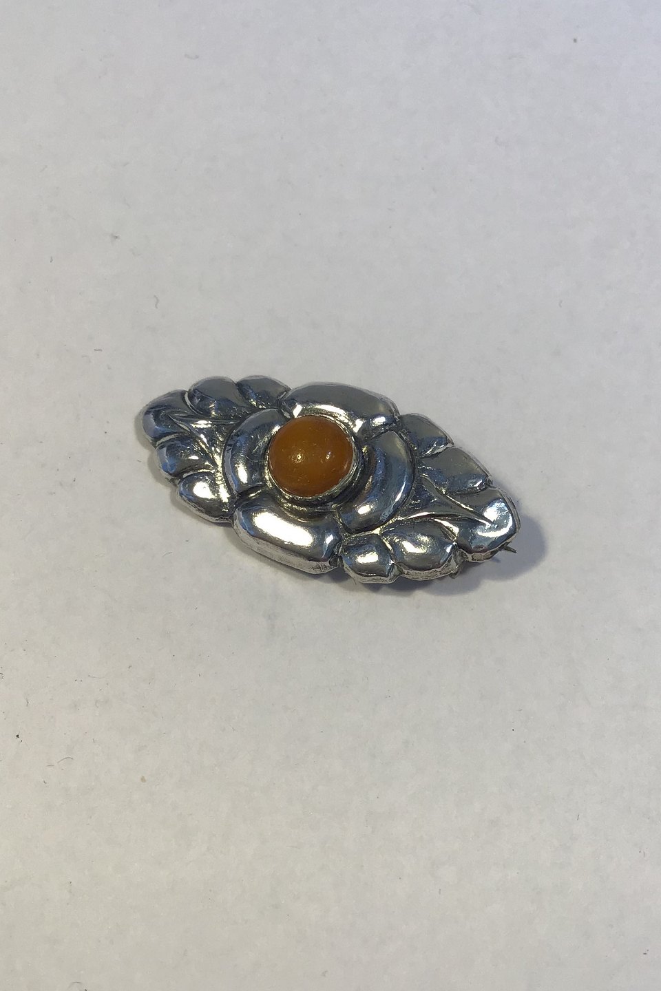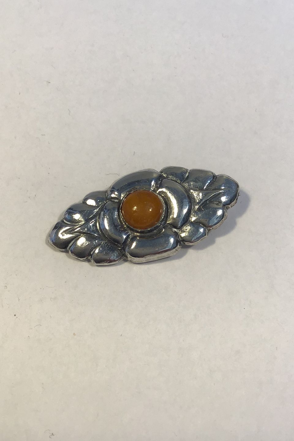 Carl M Cohr Art Nouveau Silver Brooch with Amber Measures 3.7 cm x 1.8 cm( 1 29/64 in x 0 45/64 in) Weight 3 gr/0.11 oz