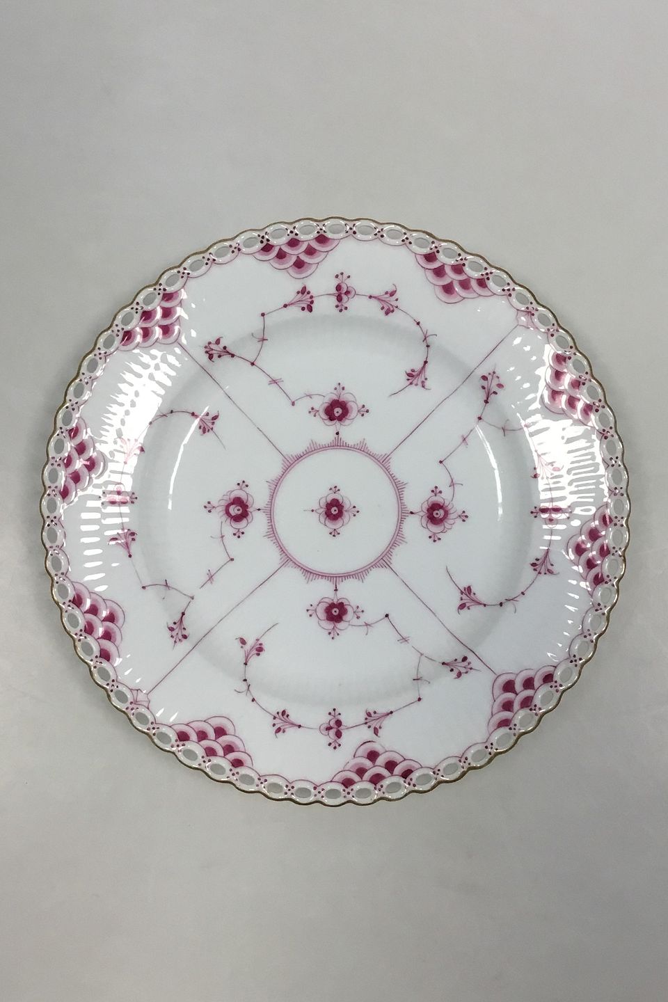 Royal Copenhagen Musselmalet Purpur med guldkant Helblonde Frokosttallerken No 2/1085. Måler 23 cm