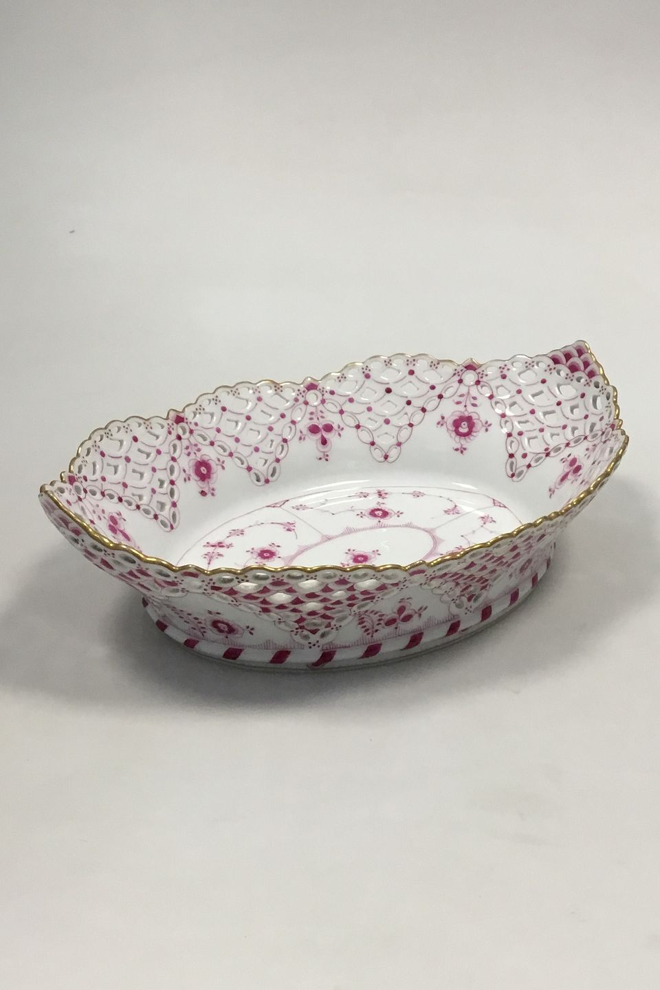 Royal Copenhagen Musselmalet Purpur med guldkant Helblonde Brødkurv. Måler 30 cm