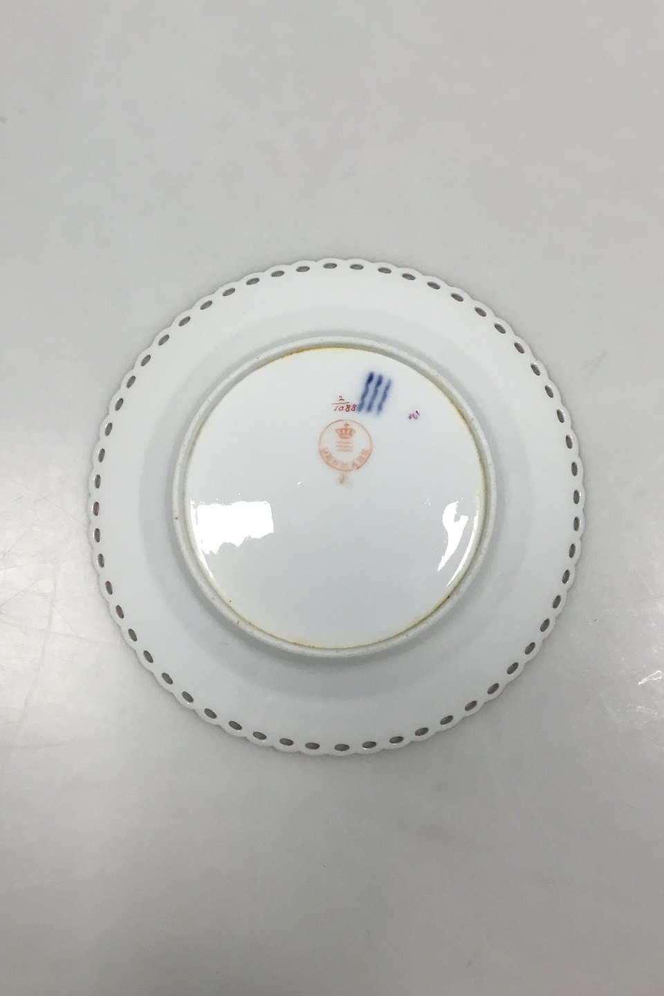 Royal Copenhagen Blue Fluted Red Ruby/Pink with Gold Edge Full Lace Cake Plate No 2/1088. Measures 14.5 cm / 5 45/64 in.