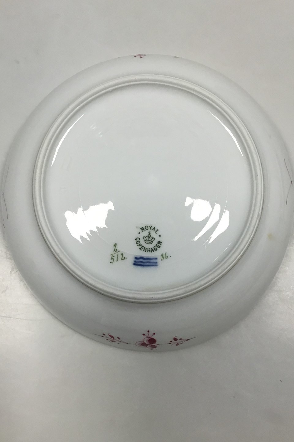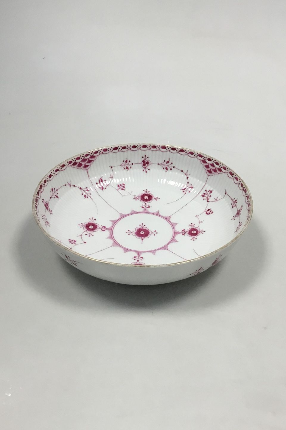 Royal Copenhagen Blue Fluted Red Ruby/Pink with Gold Edge Half Lace Bowl No 2/512. Measures 5.5 cm / 2 11/64 in. x 20.5 cm / 8 5/64 in.