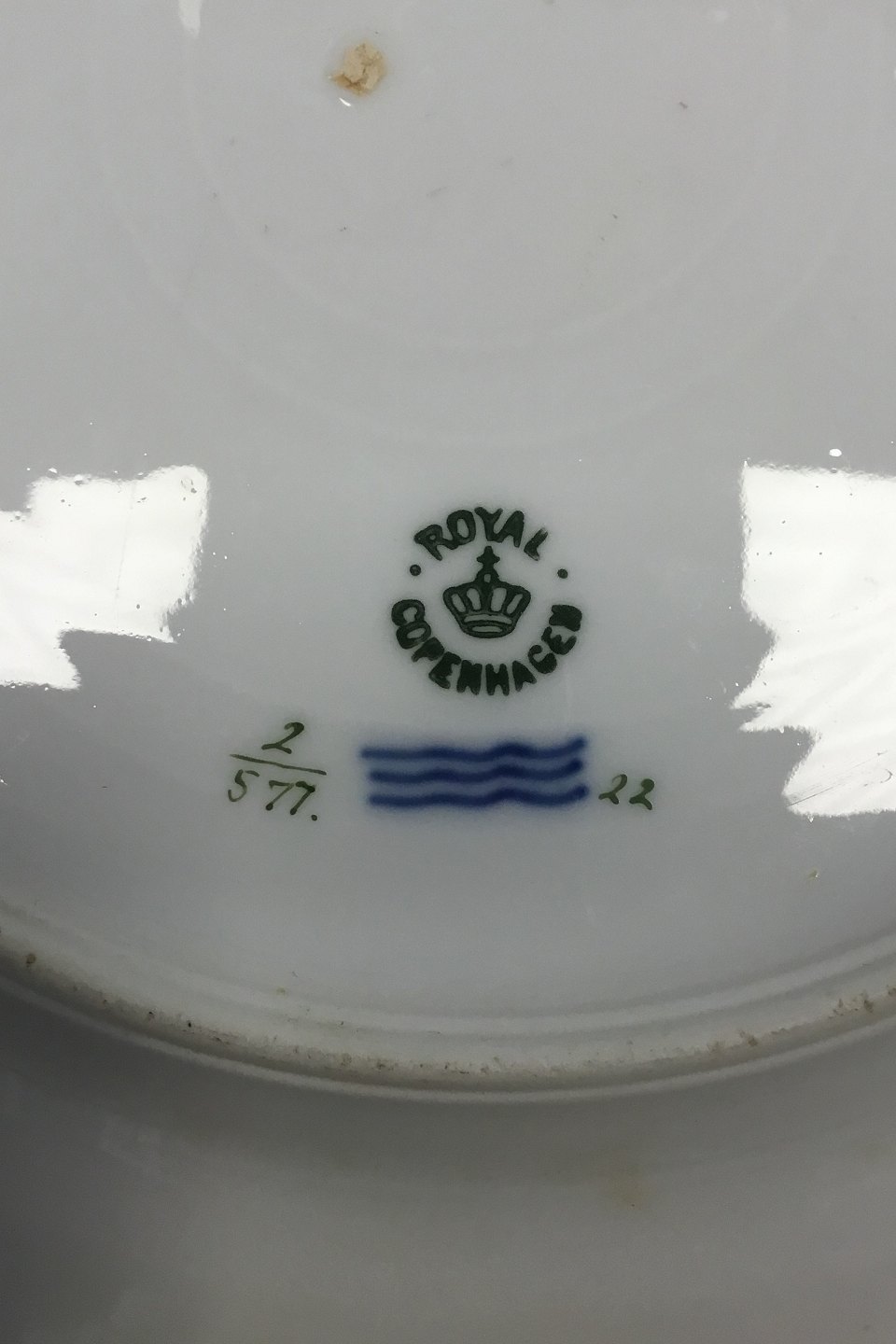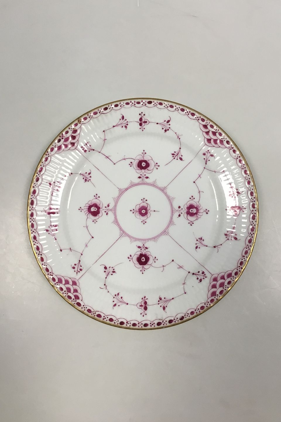 Royal Copenhagen Musselmalet Purpur med guldkant Halvblonde Tallerken No 2/577. Måler 24,5 cm