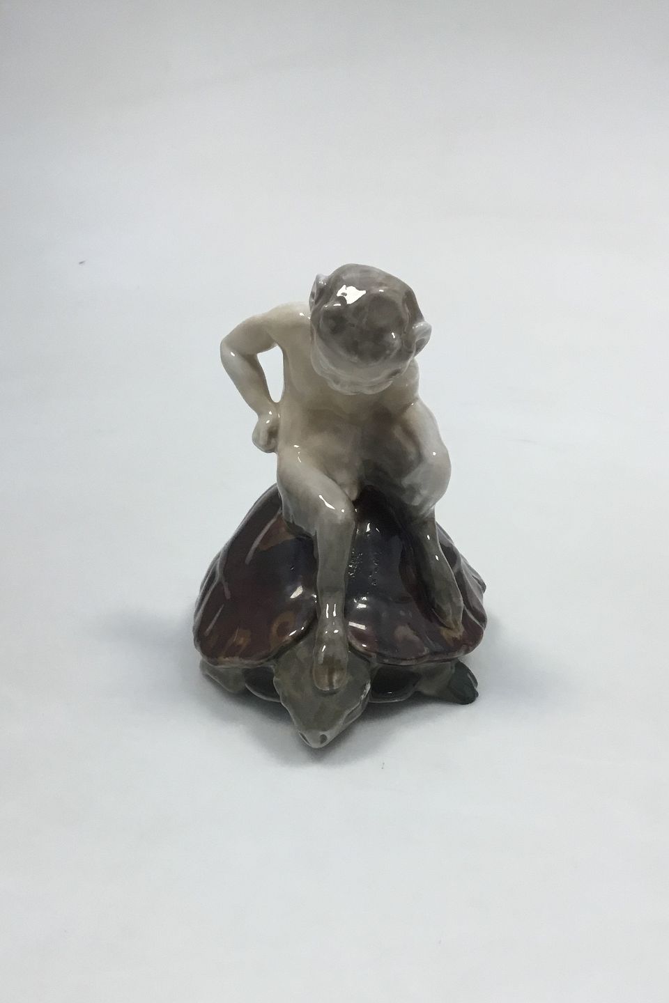 Royal Copenhagen Figur af faun på en skildpadde No 1880. Måler 13 cm. Glasuren på skildpaddens skjold har brændingsfejl