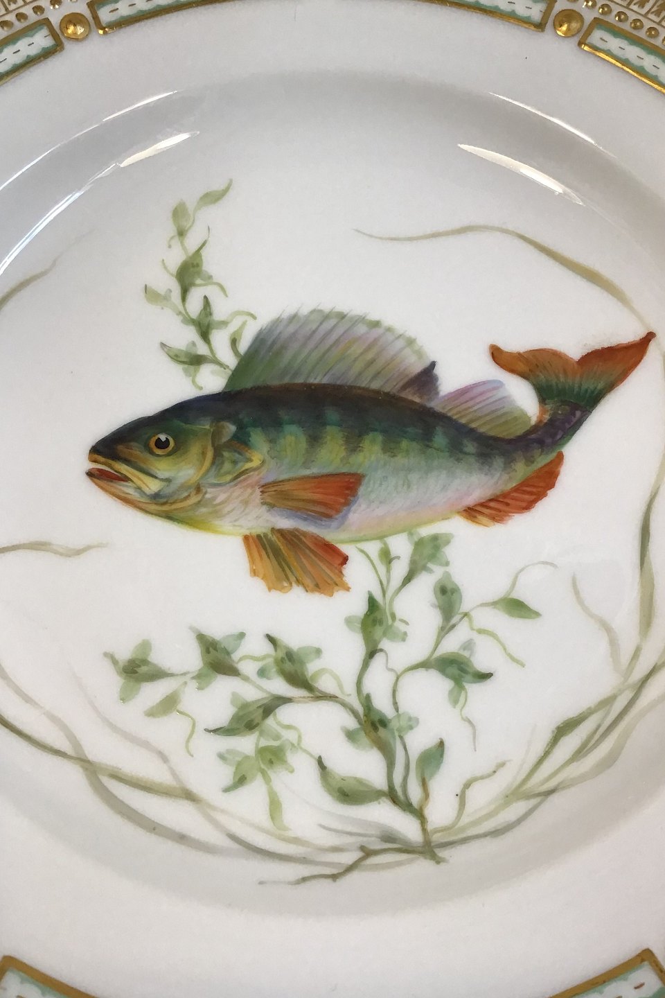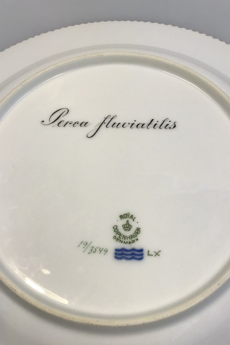 Royal Copenhagen Flora Danica Fish Plate No 19/3549. Latin name: Perca fluviatilis. Measures 25.8 cm / 10 5/32 in.