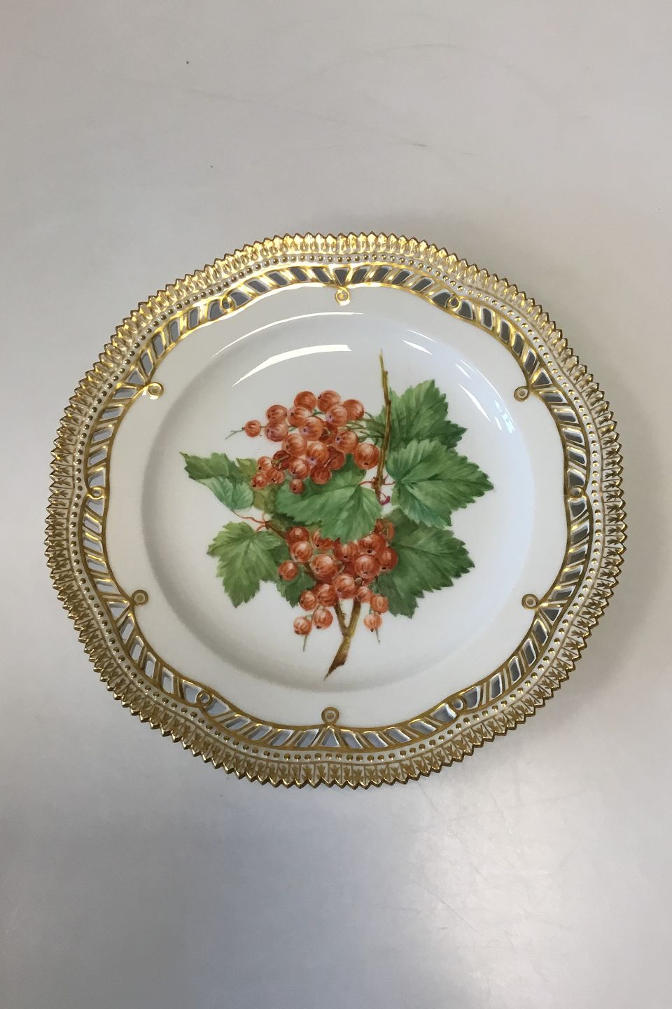 Royal Copenhagen Flora Danica Frugttallerken No 429/3554. Måler 22,7 cm. 1. Sortering. Med gennembrudt kant. Ribs. Fra 1963