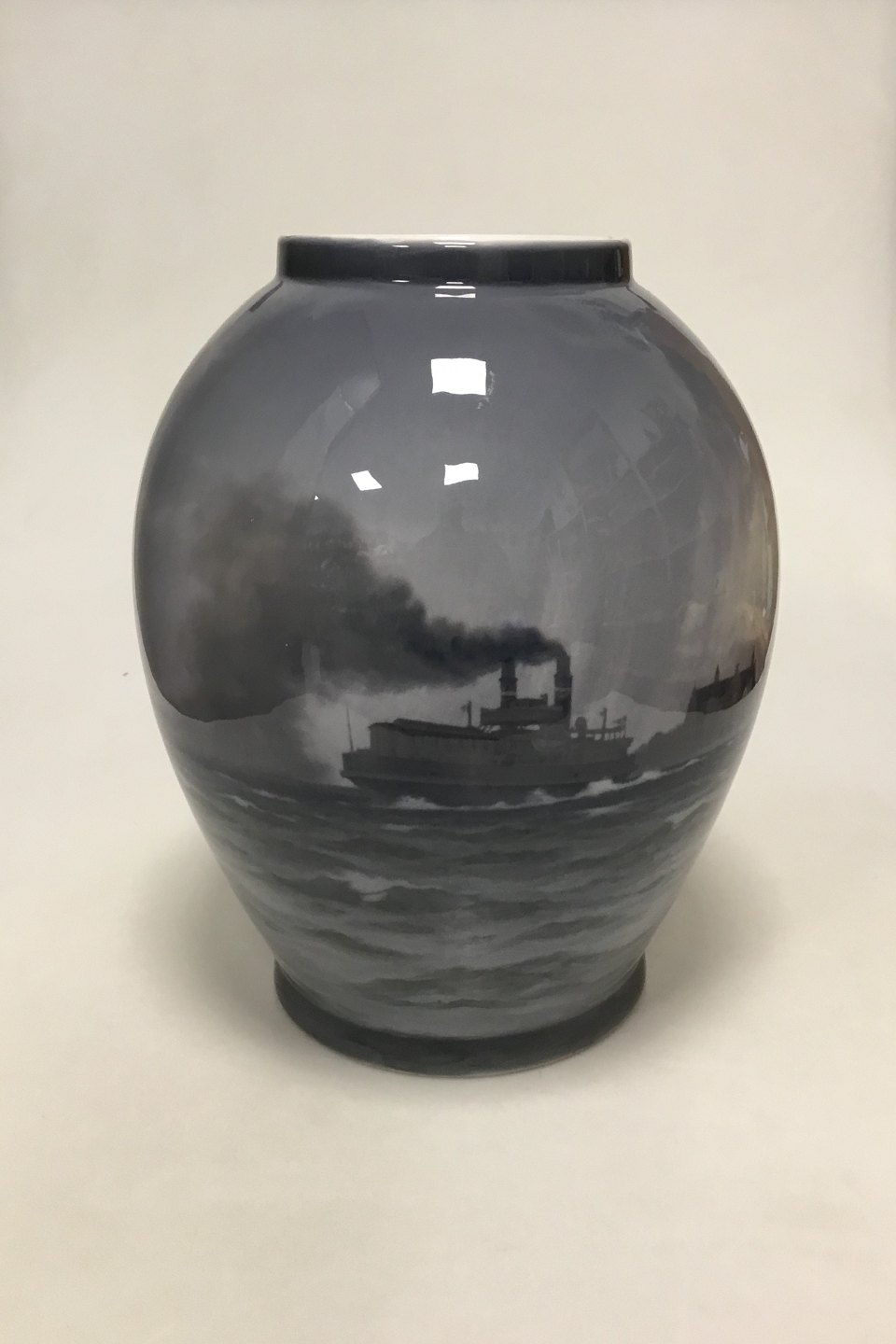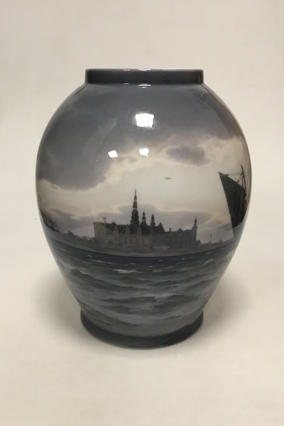 Royal Copenhagen Unika Vase af Christian Benjamin Olsen fra Maj 1913. Sundet ved Kronborg