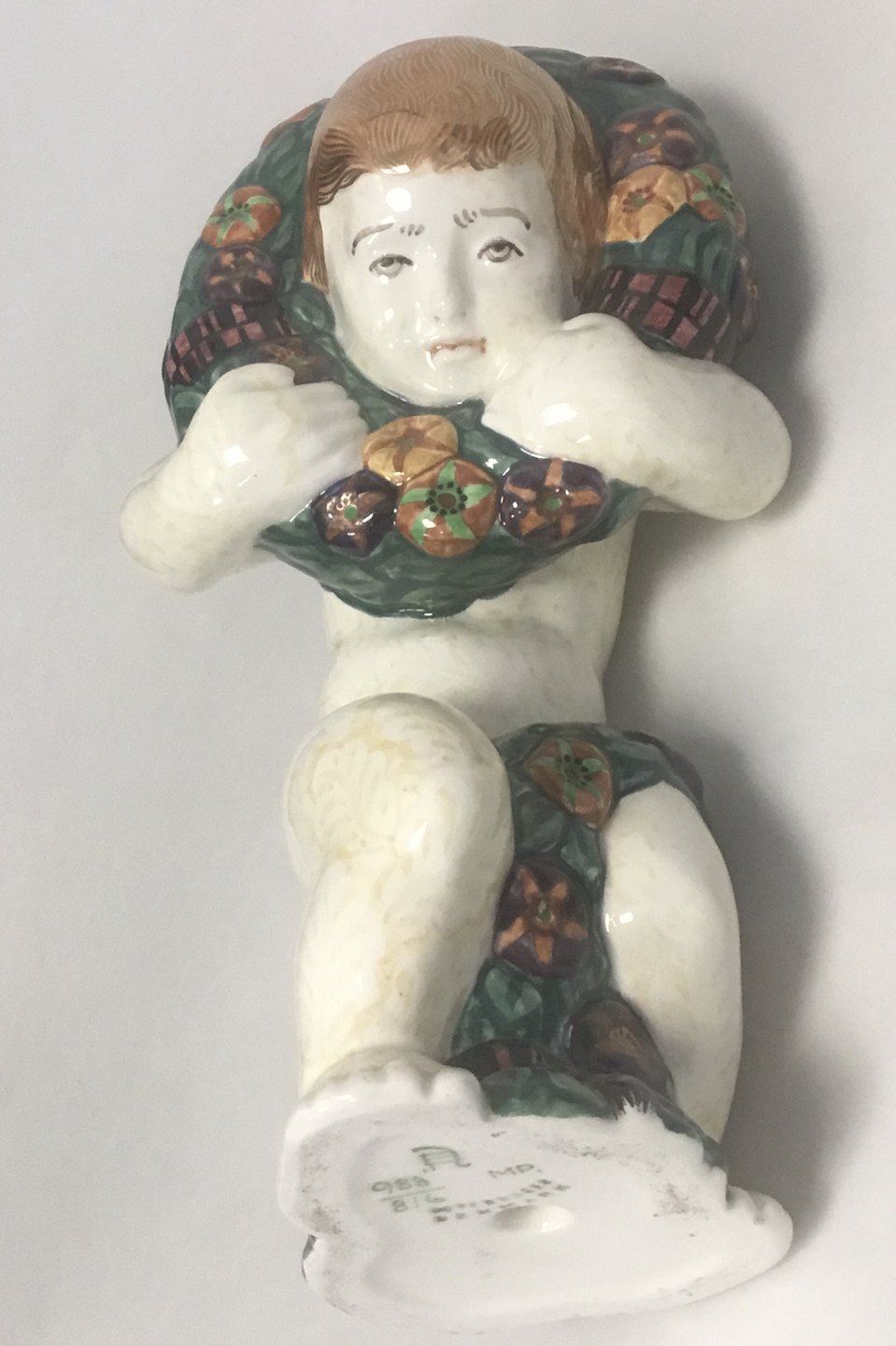 Aluminia af Rasmus Harboe. Engel med krans om hoved nr. 988/816. Måler 26,5 cm. Fra år 1913. Se anden listing for Engel med krans om livet.