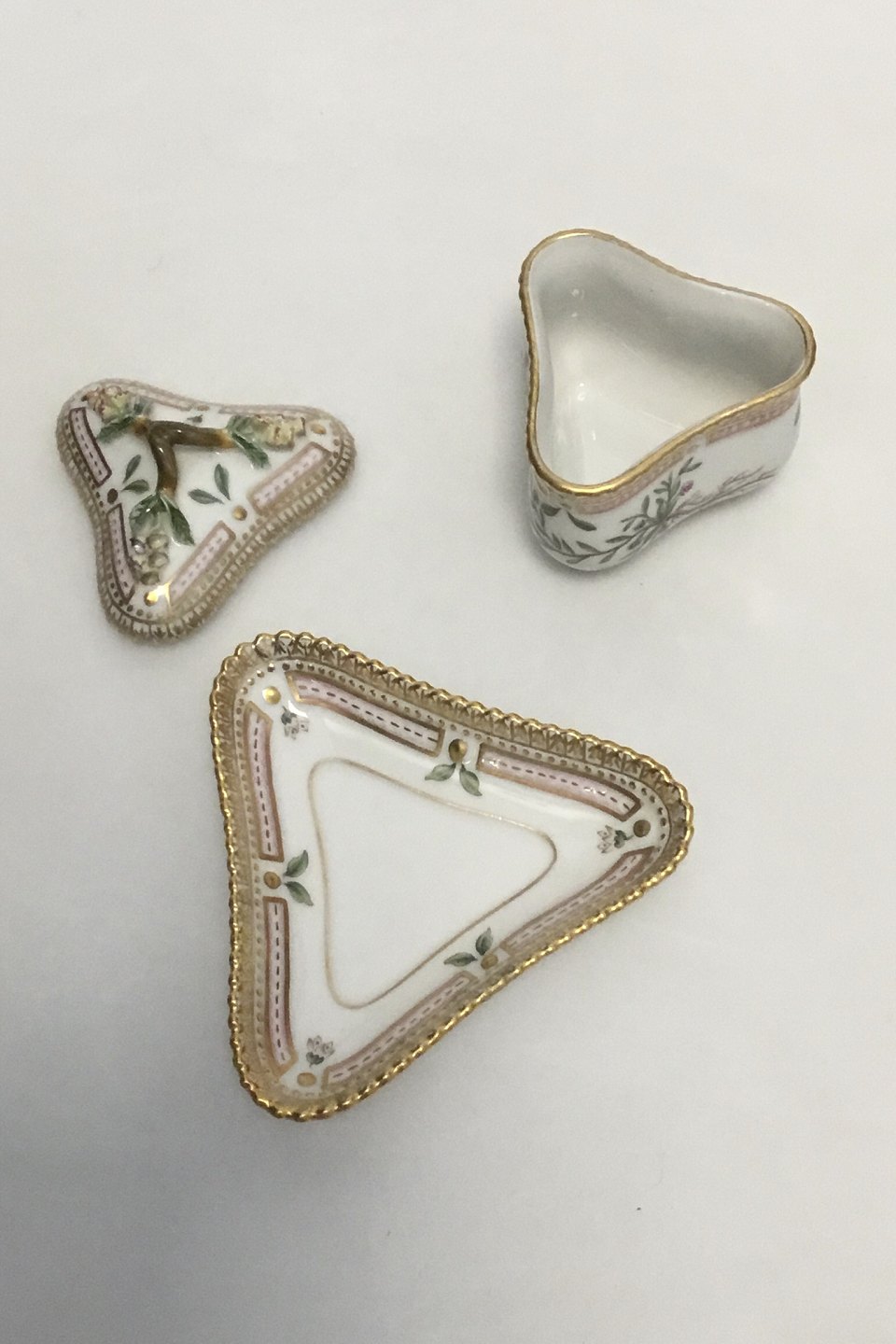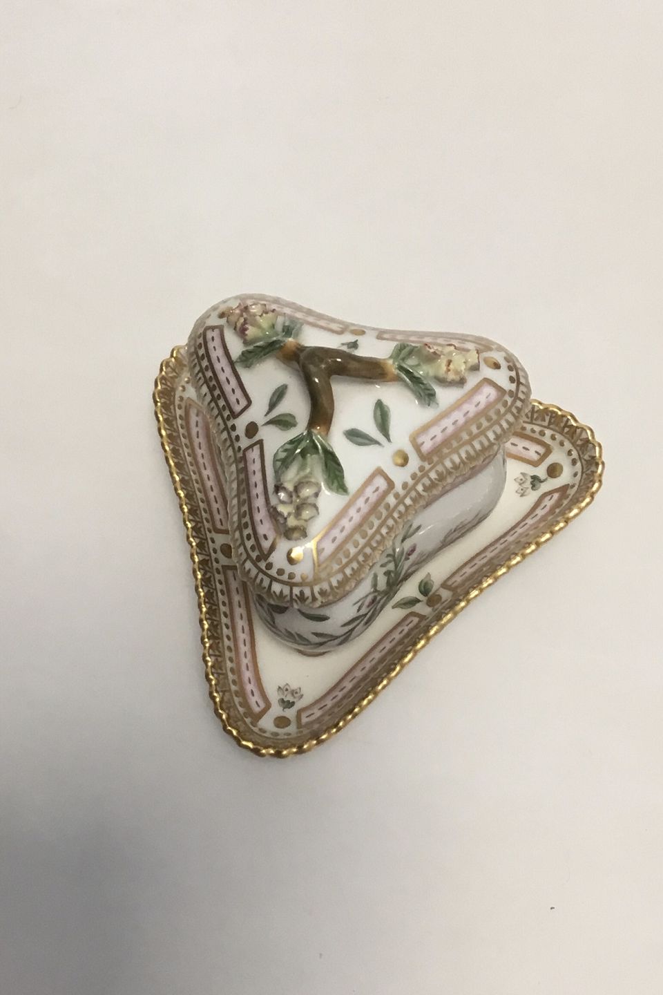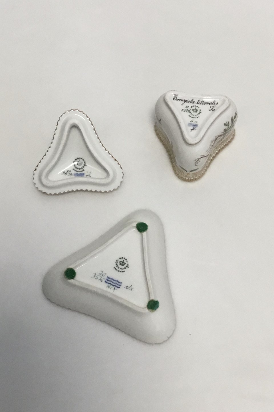 Royal Copenhagen Flora Danica 20/3575 + 20/3576 Trekantet Cremekop Latinsk Navn: "Corrigiola littoralis L.". Måler H 9 cm Diam 10 cm