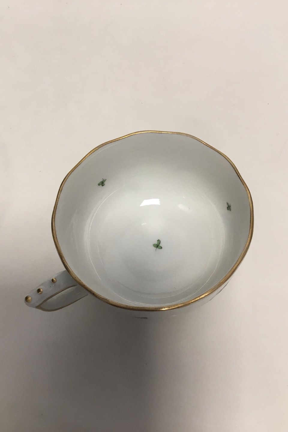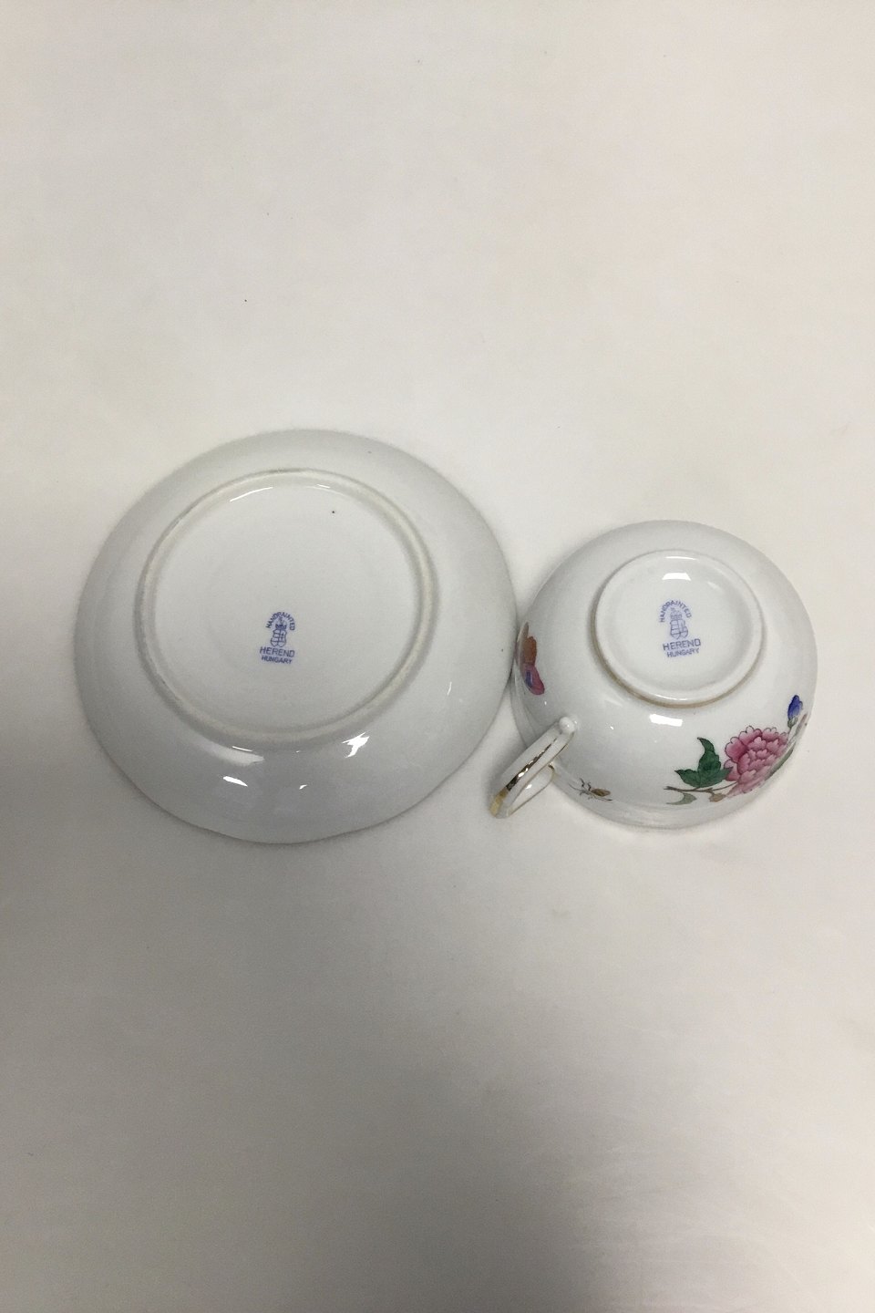 Herend Porcelain Hand-painted coffee cup and saucer with insects, butterflies and flower. Slight wear on gold rim. Diameter cup excl. handle: 8,5 cm (3 11/32"), saucer diameter: 13,5 cm (5 5/16").